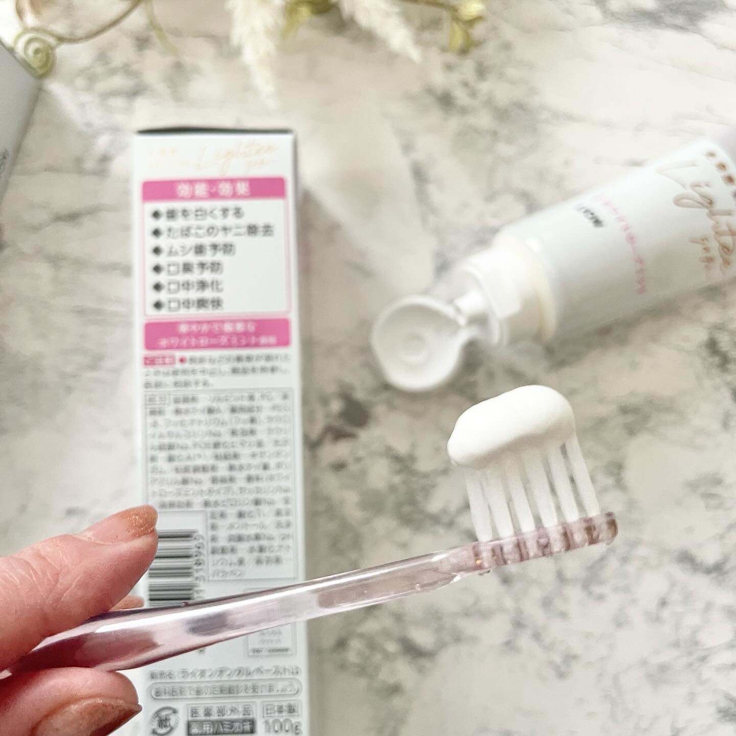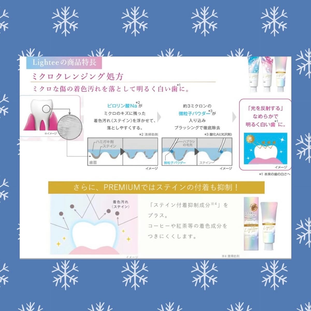 ライオンLighteeハミガキホワイトシトラスミントなんかのイベントでいただいたような...?歯面にできるミクロなキズに残った着色汚れを徹底除去🧹✨ステインプロテクト処方でコーヒーや紅茶などの着色成分をつきにくくさせ、”光を反射する”明るく白...