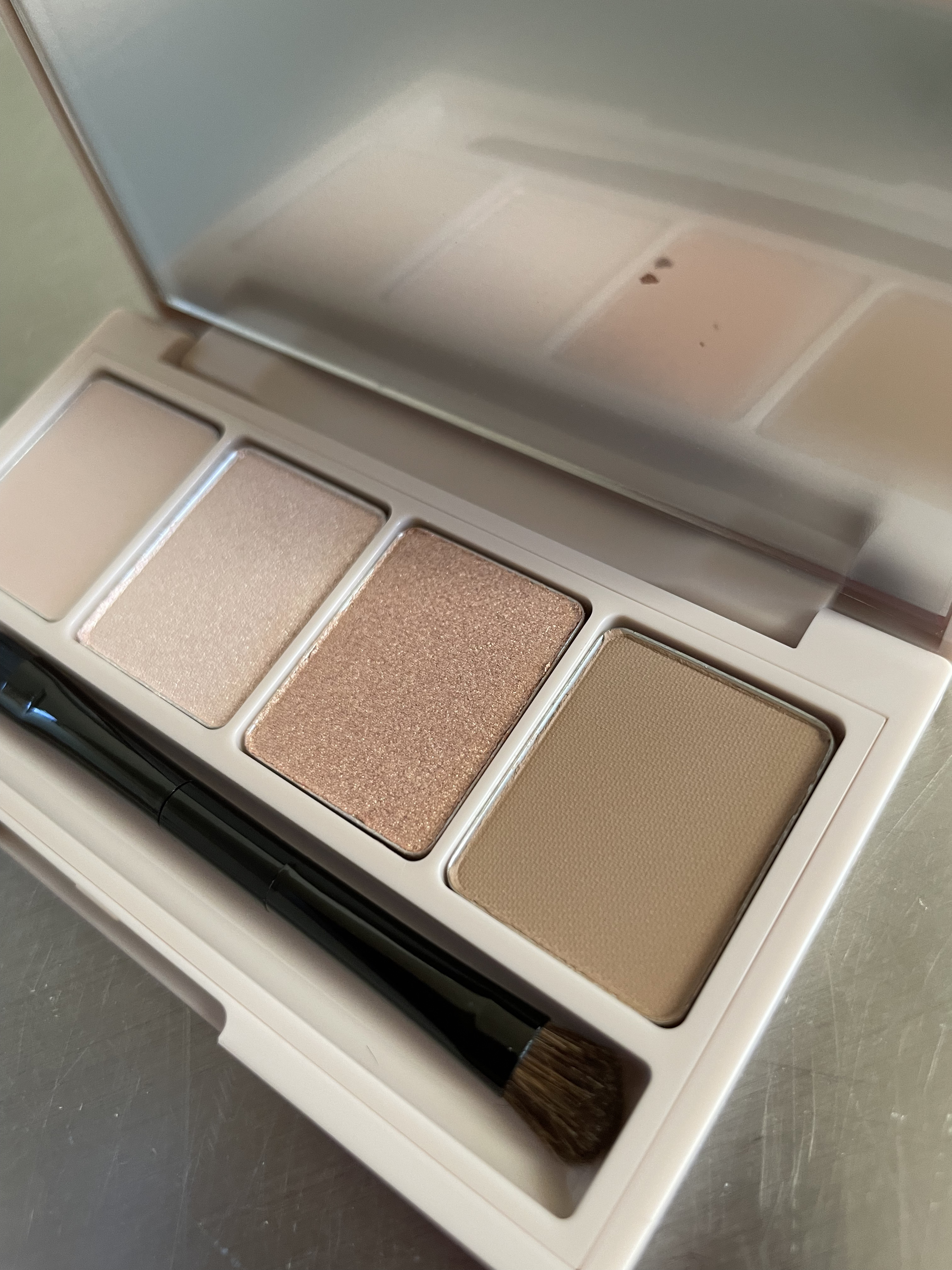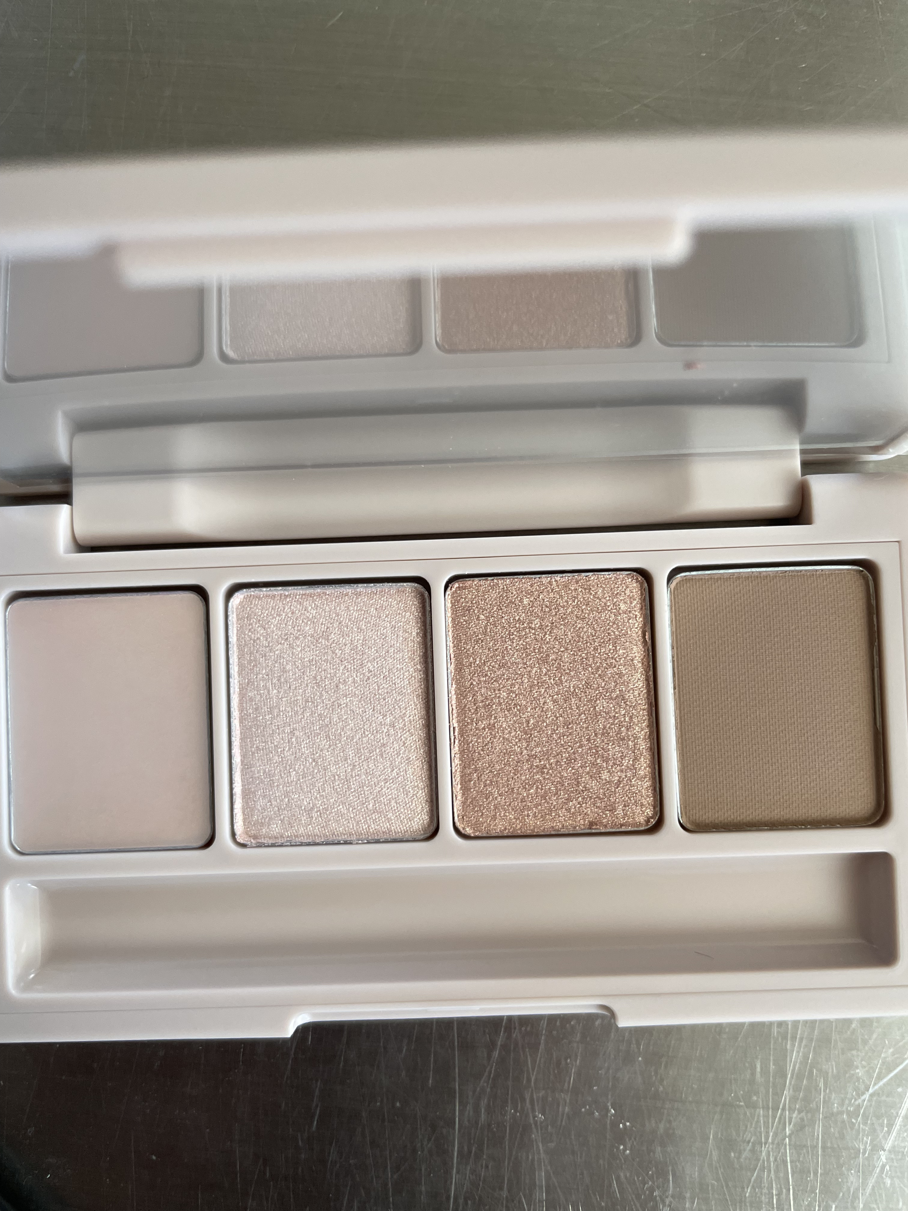 透け感がある色で気に入りました。 スッキリとした目元に見せられるかも! 元々目が大きく この頃はアイシャドウのせいか 落とした後も黒ずんで影になり ガイコツの目のところを 真っ黒に塗ったかのような かわいくもなく喜ばしくもないデカ目で アイシャドウはもう買えないな、と 感じていた所でした。 明日が楽しみです。