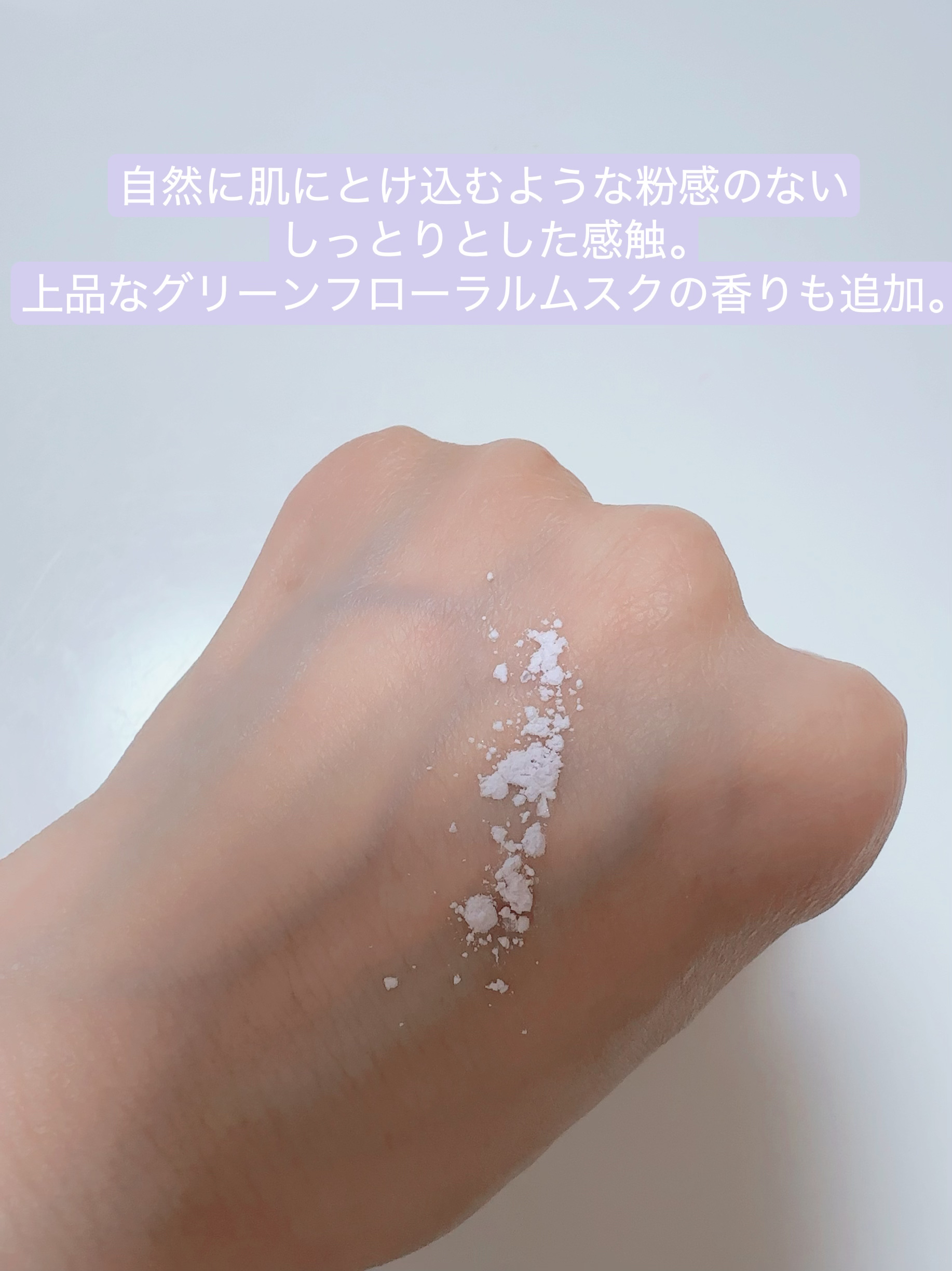 サラサラ感がすごいんです。。 乾燥肌なのでしっかりめに保湿してからお化粧するのですがそれでもベタつかずサラサラな肌に仕上げてくれます👍 保湿も残してくれるので何度も触りたくなるようなもちもちな肌になるところが一番の推しポイント!! 高級感のあるお上品な香りです! 蓋を開けたらふわっと香りますが、お肌に乗せた後もしつこくなく香りに敏感な方でも使えるかなと思います!
