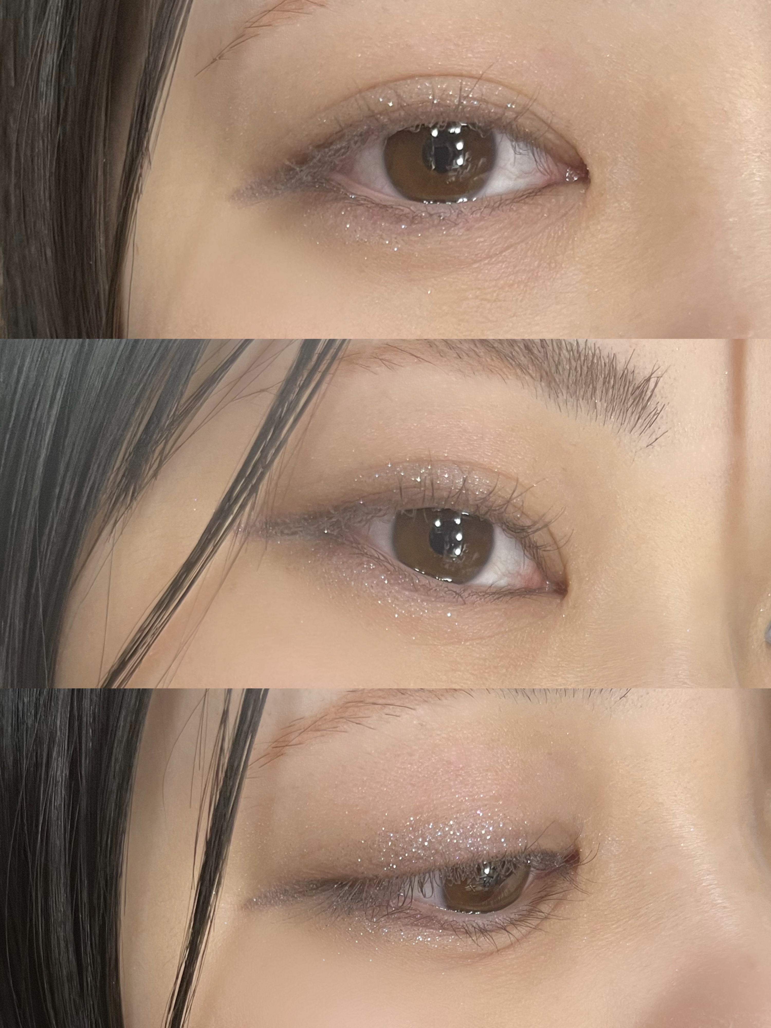 思っていたよりもシアーな発色で使いやすい3色でした! 特に106 夜雲の涙は普段絶対に選ばない使いづらそうなカラーだと思っていたのですが、薄づきでニュアンスチェンジにも使えそうな絶妙発色✨️ 104がグリーンパール、106がブルーパール入りでめちゃくちゃ可愛かったです🥰 104が特に人気のようで売り切れ続出!🥺