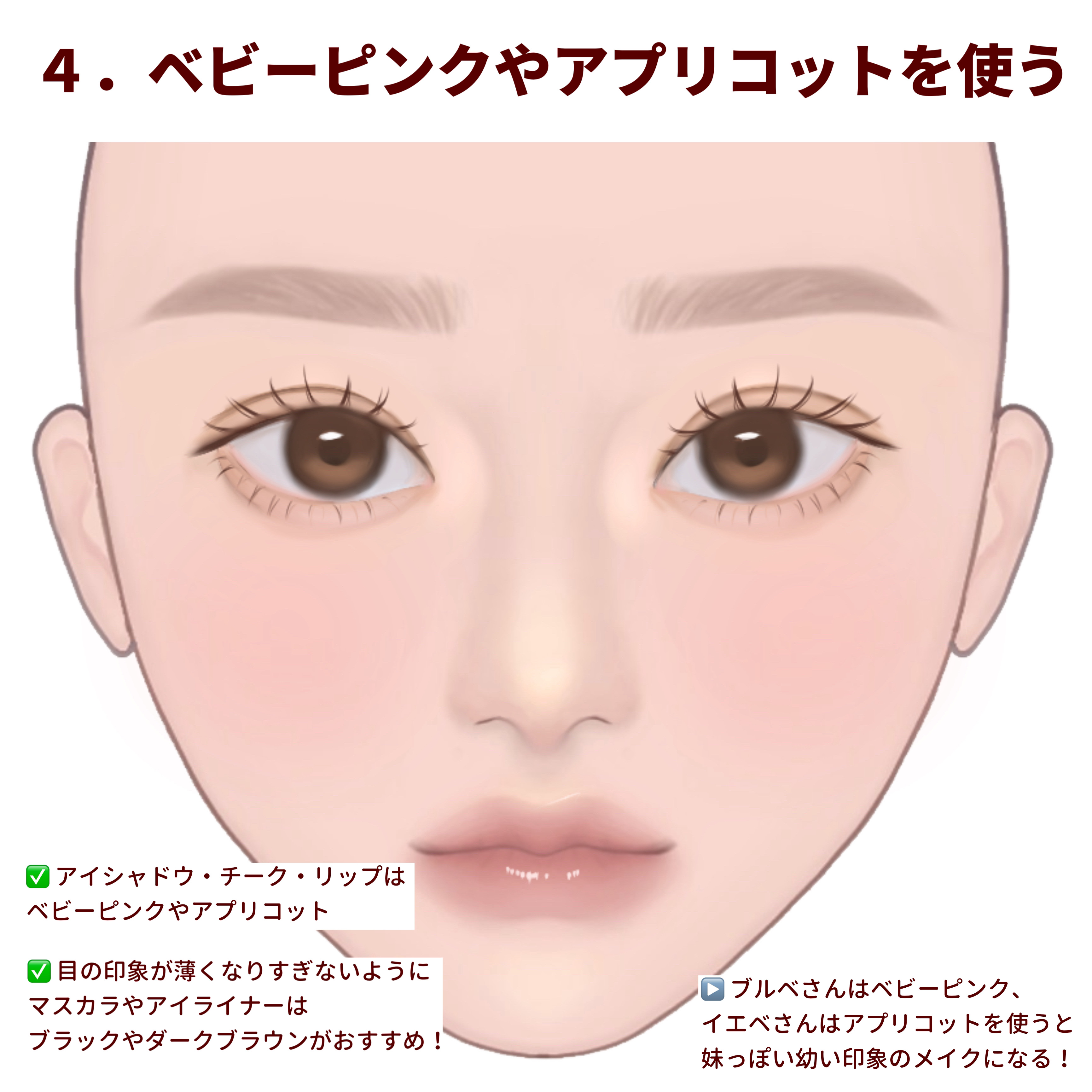 今IVEウォニョンちゃんのようなバブみメイクをしてる子たくさんいますよね🥰 バブみメイクはとにかく青みピンクの色をアイシャドウ、チーク、リップに取り入れればOK🙆♀️ いつもより濃いめにのせてみると韓国アイドルに近づけますよ❣️