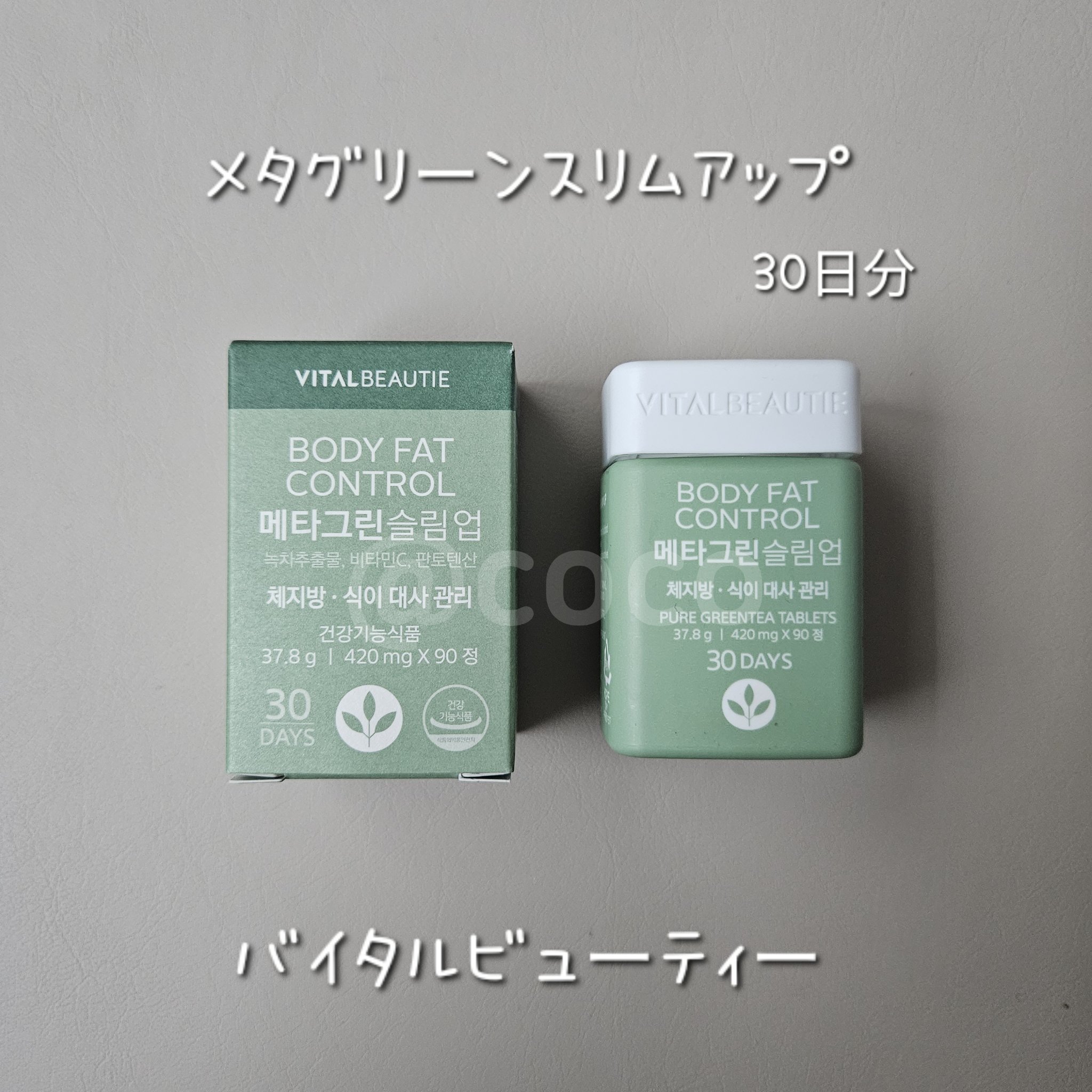 ✿バイタルビューティー✿メタグリーンスリムアップ30日分オリーブヤング健康機能食品1位*を獲得した脂肪燃焼サプリ💊体脂肪の減少を手伝ってくれる緑茶カテキンが高配合されていて、食事後の脂肪の吸収を抑えて排出を手伝ってくれる商品✨️食後に1日2粒...