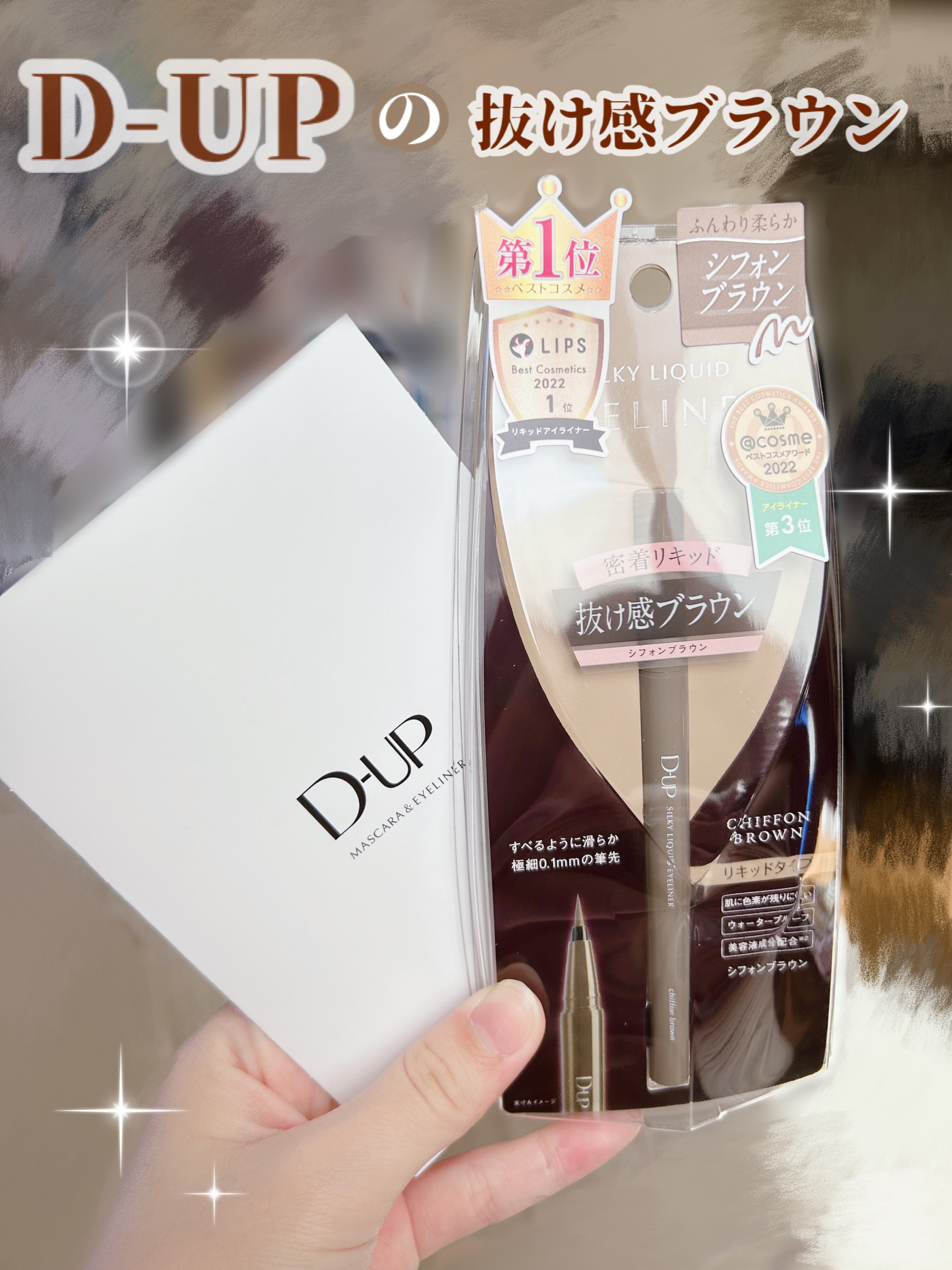 ☆描きやすいのに、落ちにくい!するするとなめらかな、クセになる描き心地のリキッドアイライナー!D-UPシルキーリキッドアイライナーWPブラウンブラック■すべるような“筆感触”しなやかでコシのある極細0.1mmの筆先。筆圧がコントロールしやすく...