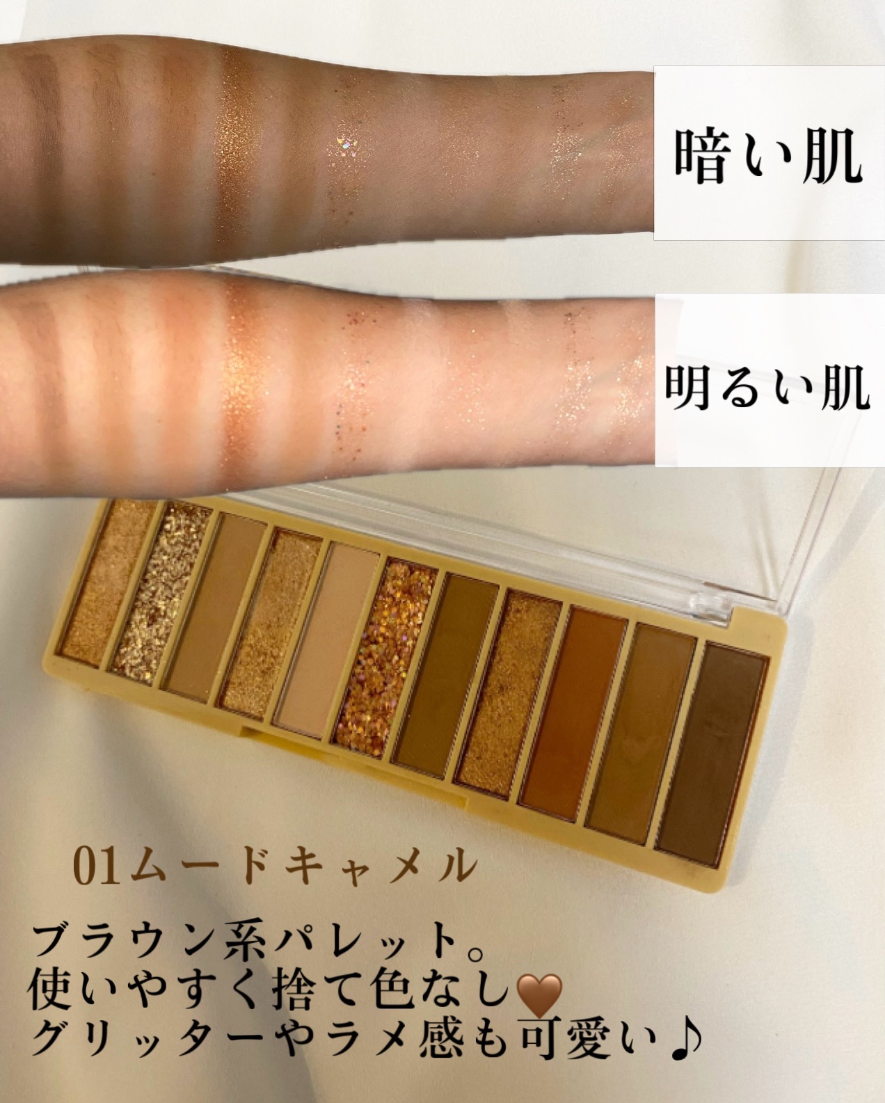 01ムードキャメルオレンジブラウンやブラウン系メイクにぴったりな色味がそろったアイシャドウパレット🍊🧶🍂🤎220円で購入できるので、ブラウン系メイクに挑戦したい方にもおすすめです😌#アイシャドウパレット#ドライブーケ#100均コスメ#プチプラ...