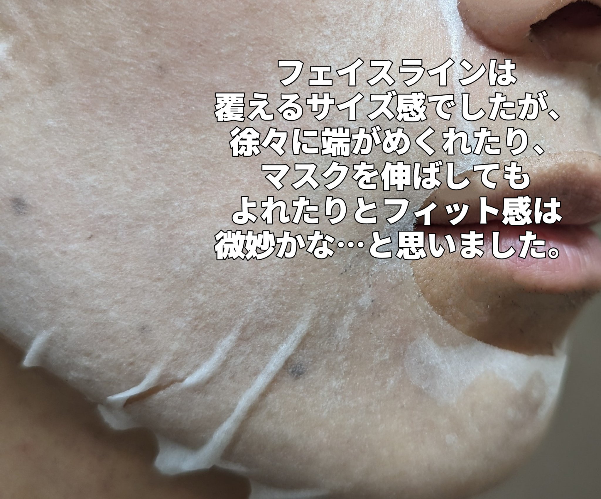 手軽な貼る化粧水 化粧水代わりに使えるデイリーマスクで、美容液マスクほどもったりしたような感じではありませんでした。 密着感&伸縮性◯ マスクは密着感と伸縮性もあるので、特にいつも気になるところだった、こめかみやあご周りの剥がれもなく、しっかり覆ってくれました! リーズナブルで続けやすい価格 7枚440円(1枚あたり約63円)とリーズナブルで毎日使いやすく、小容量なので衛生面的にも良いと思いました。