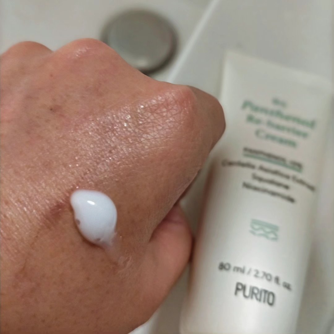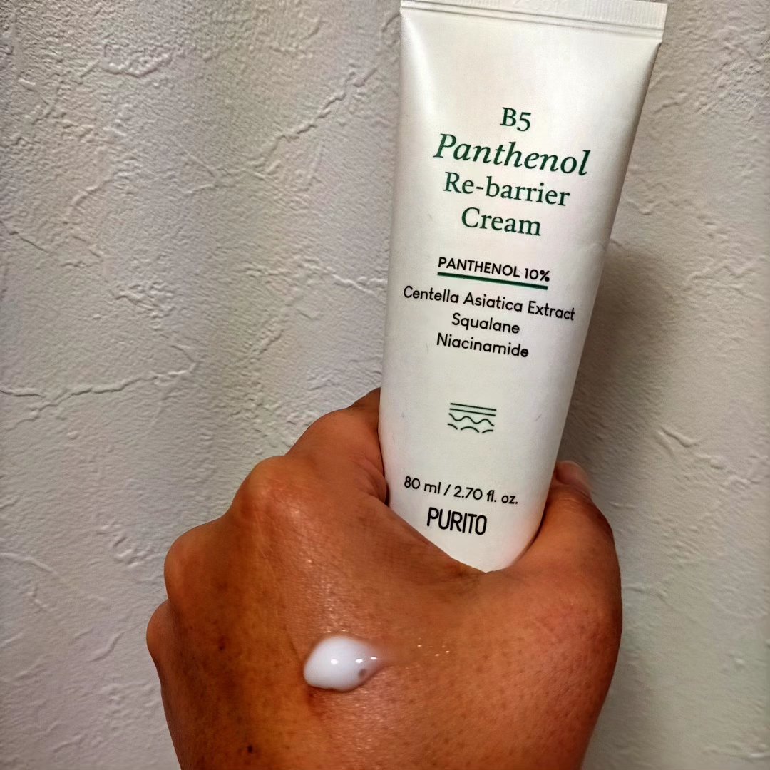使いきり!PURITOのB5パンテノールリバリアクリーム。お肌にぴたっとすーっとなテクスチャでみずみずしいのにベタつかない、さっぱりめ。パンテノール配合で肌に浸透しやすく、保湿力に優れ肌の水分が蒸発するのを防ぎ、水分保持もできるので肌のバリア...