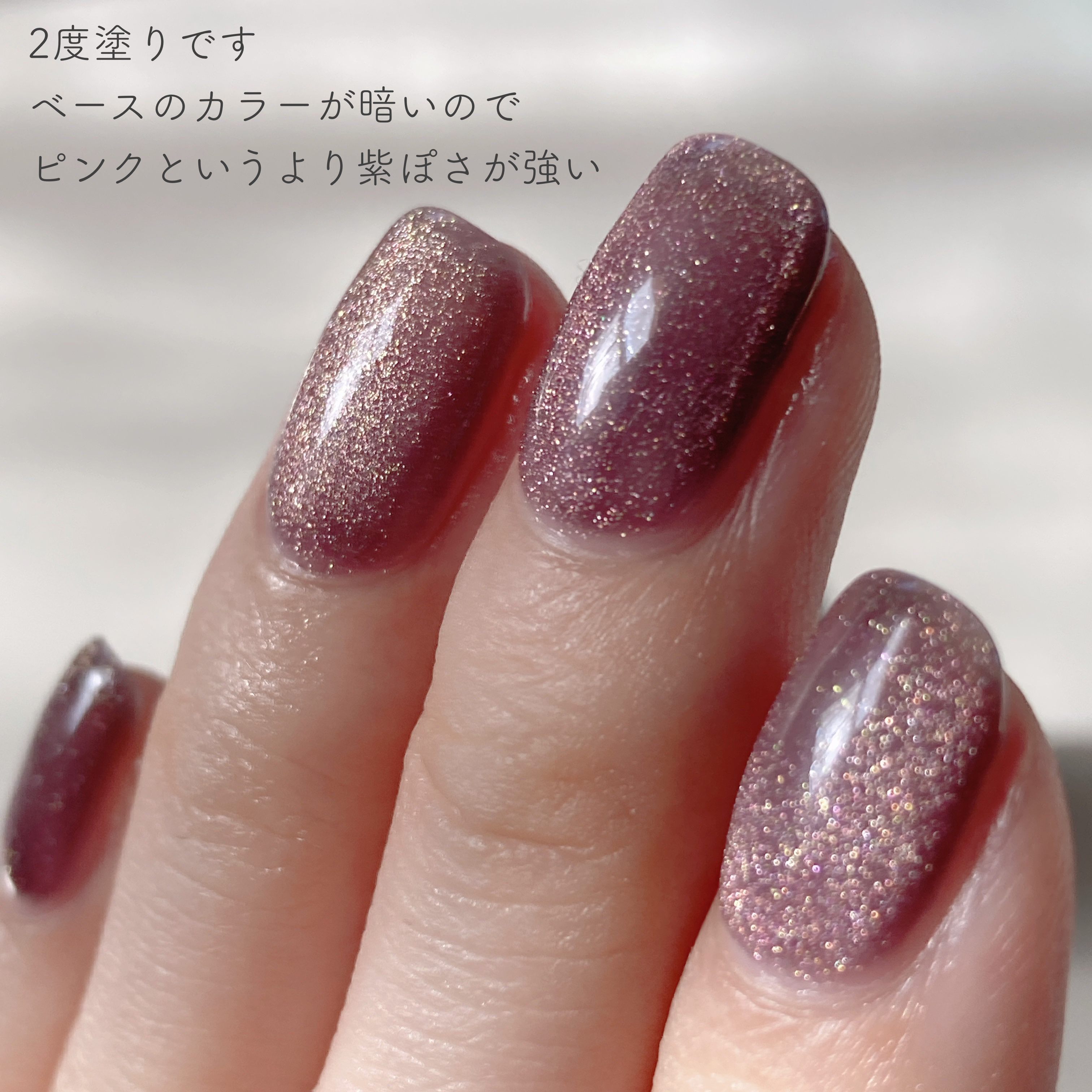 【高見えネイル💅】キャンドゥの商品で可愛いネイルができます◎流行っている理由がわかるカラーでした🩷とっても可愛くて大人っぽい◎色味は似てますが個人的にフラッシュマグのROSEDUSTFILMよりもマグのPEARLLILACの方が微粒子な分大人...