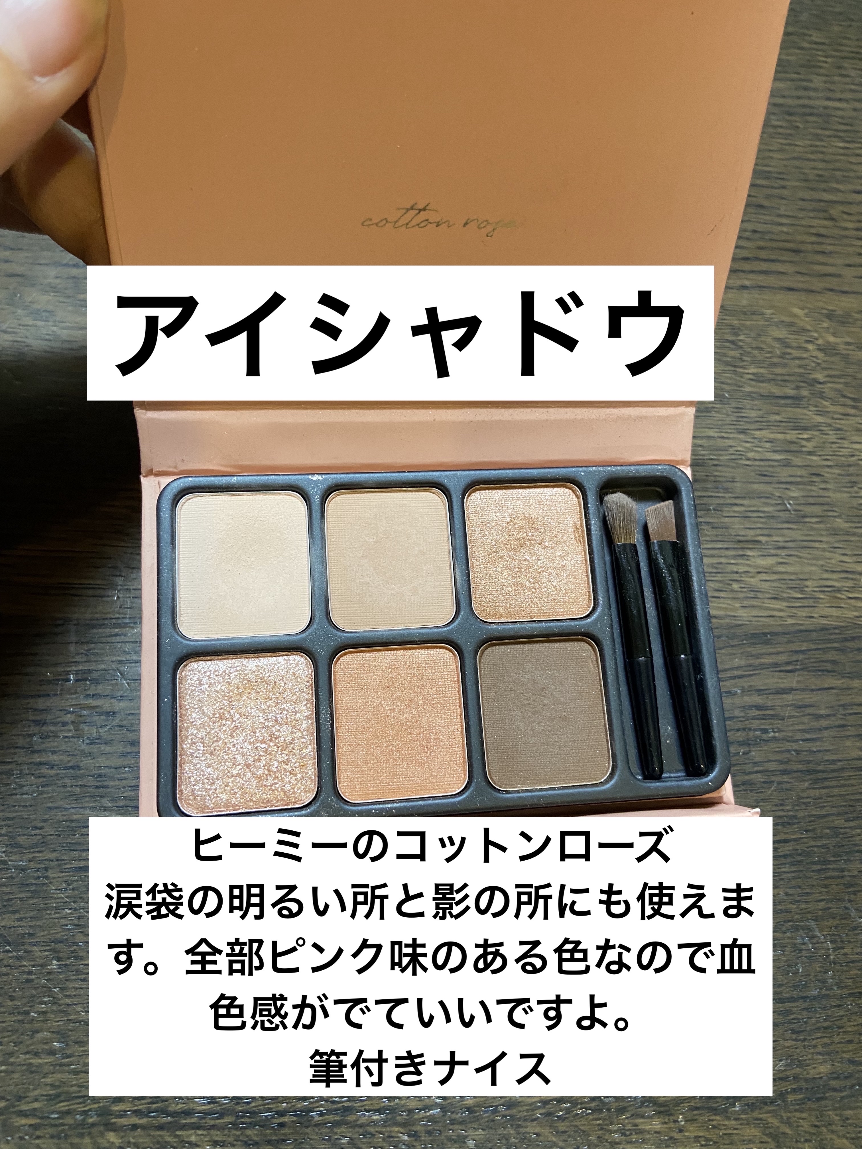 描いてます。もう息を吸って吐くが如く毎日当たり前に描いてます。 涙袋がないと外出したくないほど愛してます。 すっぴんでも涙袋を描いています。(それはすっぴんと言わない) ①涙袋にしたい部分にコンシーラーぬる ② 1で書いたコンシーラーの上にアイシャドーをポンポンとのせる(つけすぎ厳禁) ③影を太めに書く ④3で書いた影の一番下のラインに線を引く ①キャンメイク アイバッグコンシーラー ②HOLIKA HOLIKA マイフェイブピースシャドウ (エクセレント) ③Bbia ラストオート ジェルアイライナー13番 (なんか似たやつダイソーに売ってた) ④キャンメイク3wayスリムアイルージュライナー