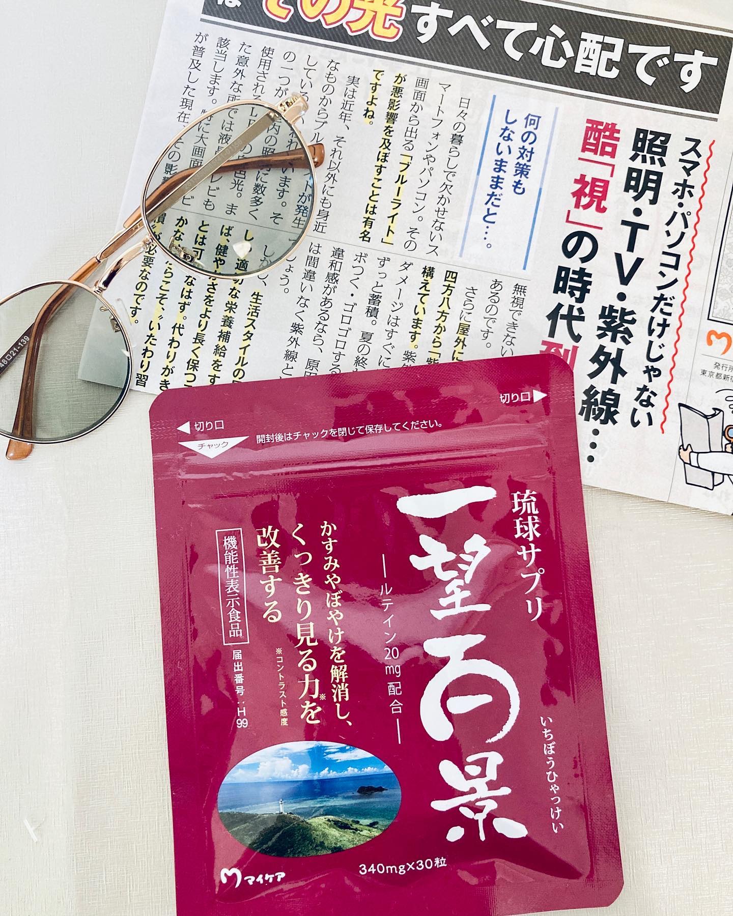新聞や読書も楽しみたい」「パソコンやスマホも満喫したい」そんな方におすすめ✨ マイケアの『一望百景』は、ルテイン20mgを配合した機能性表示食品。 2022年4月に累計販売数1,000万袋、同7月には累計100万人を突破した「琉球サプリ」です。