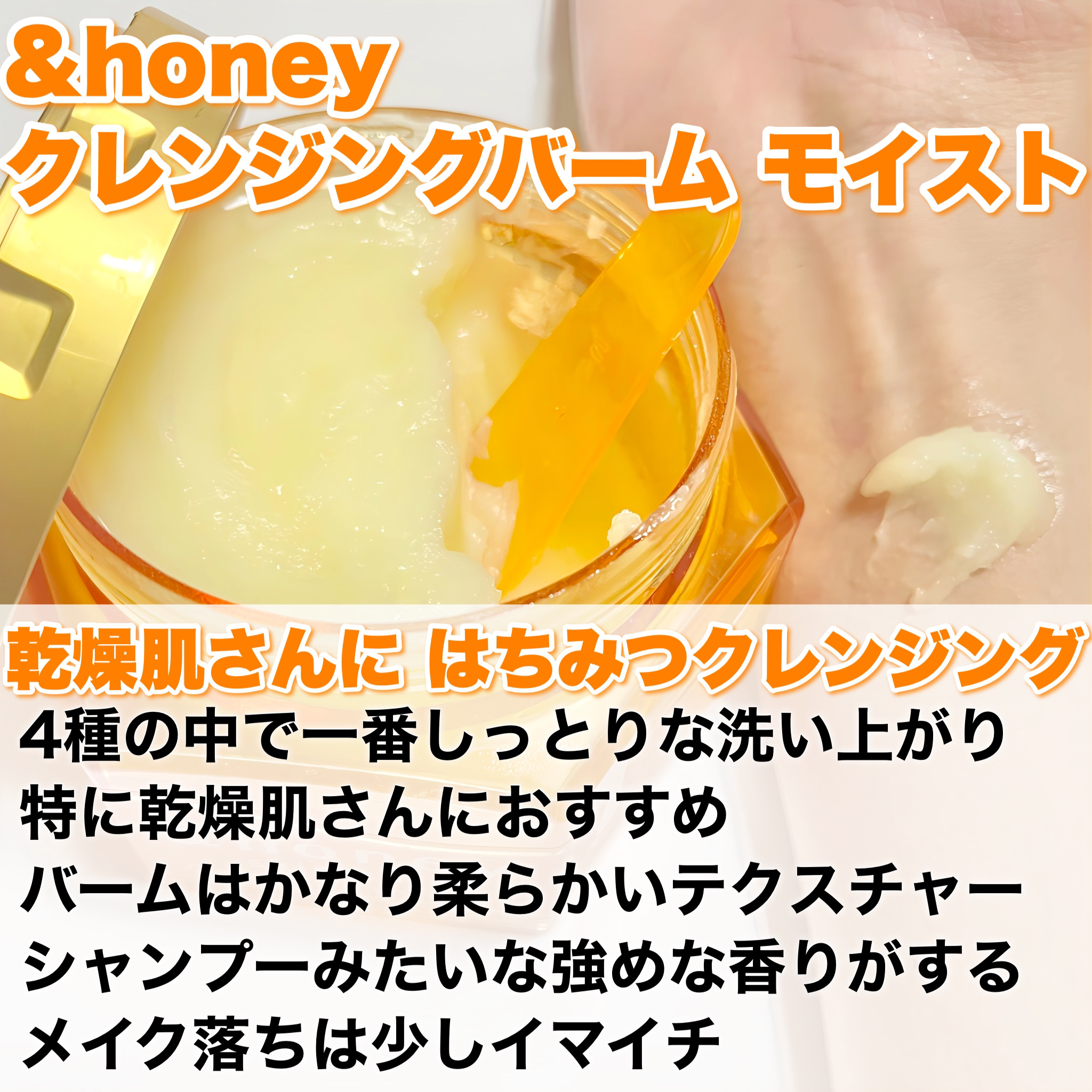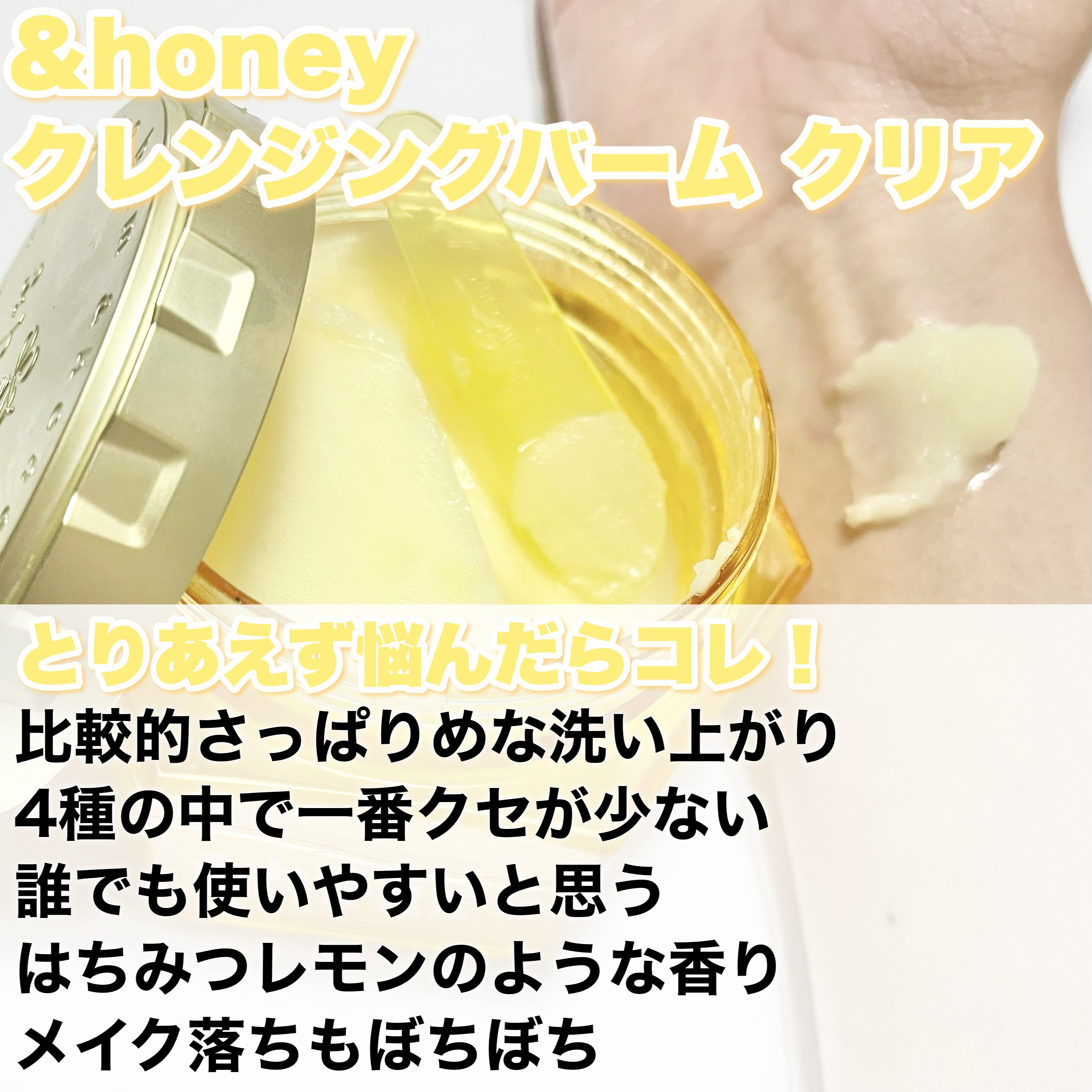 比べでみた!&honeyクレンジングバームクレンジングバームモイストクレンジングバームクリア90g¥1,980しっかりメイクの日には角栓ケアのためにもバームを使ってしっかりメイクを落としたい。&honeyははちみつの甘い香りに癒されながらクレ...