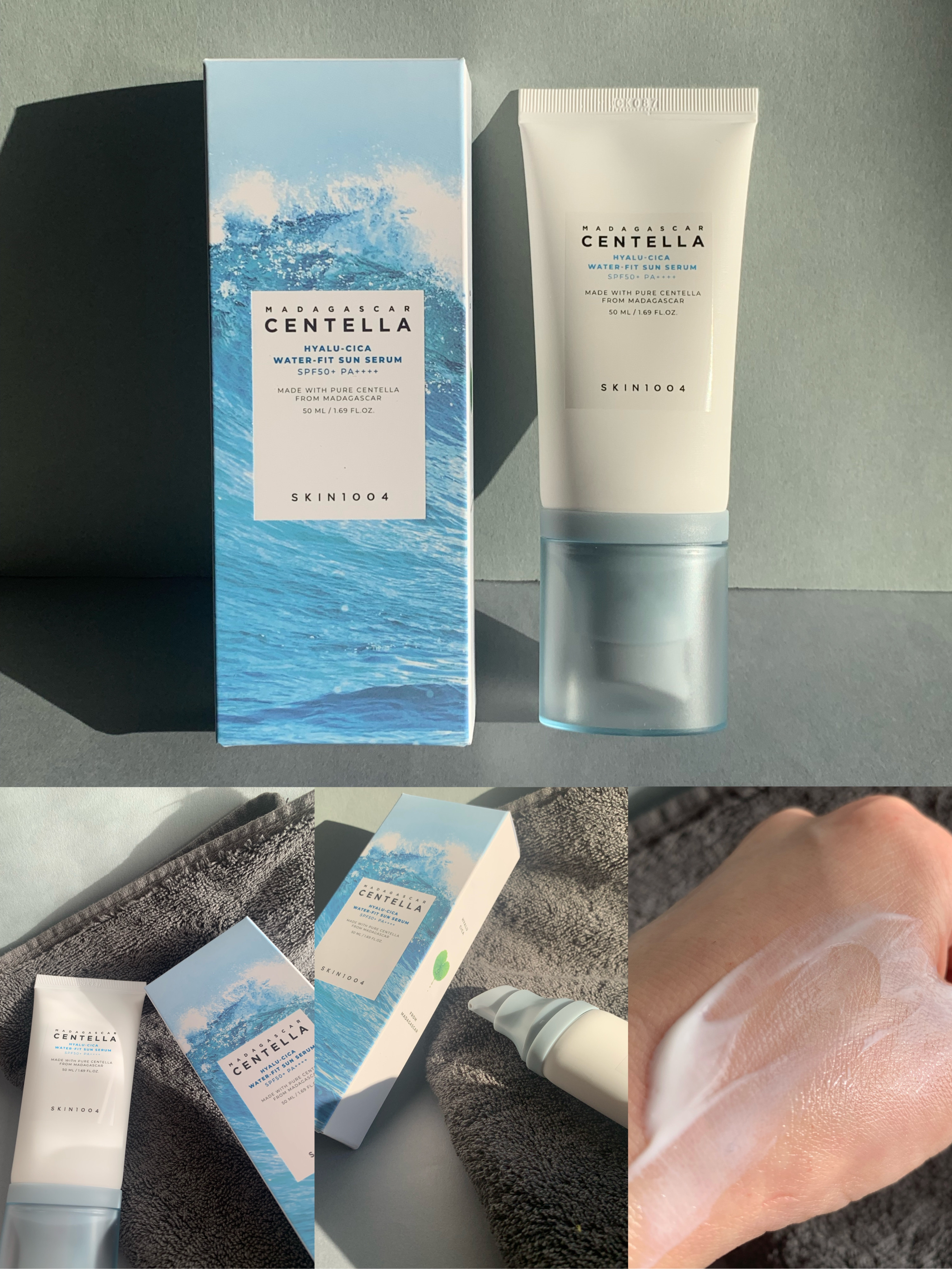 SKIN1004ヒアルーシカウォーターフィットサンセラム紫外線が気になる季節におすすめ!ツヤ肌UV美容液みずみずしい使用感で日焼け止め特有のキシキシや匂いがせずベタつかず白浮きしない!まるでセラムをつけたかのような軽い付け心地で乾燥を感じず最...