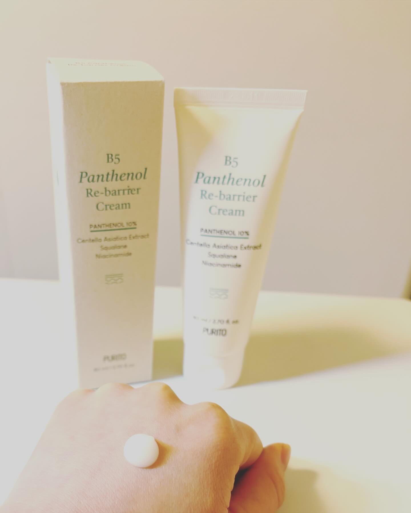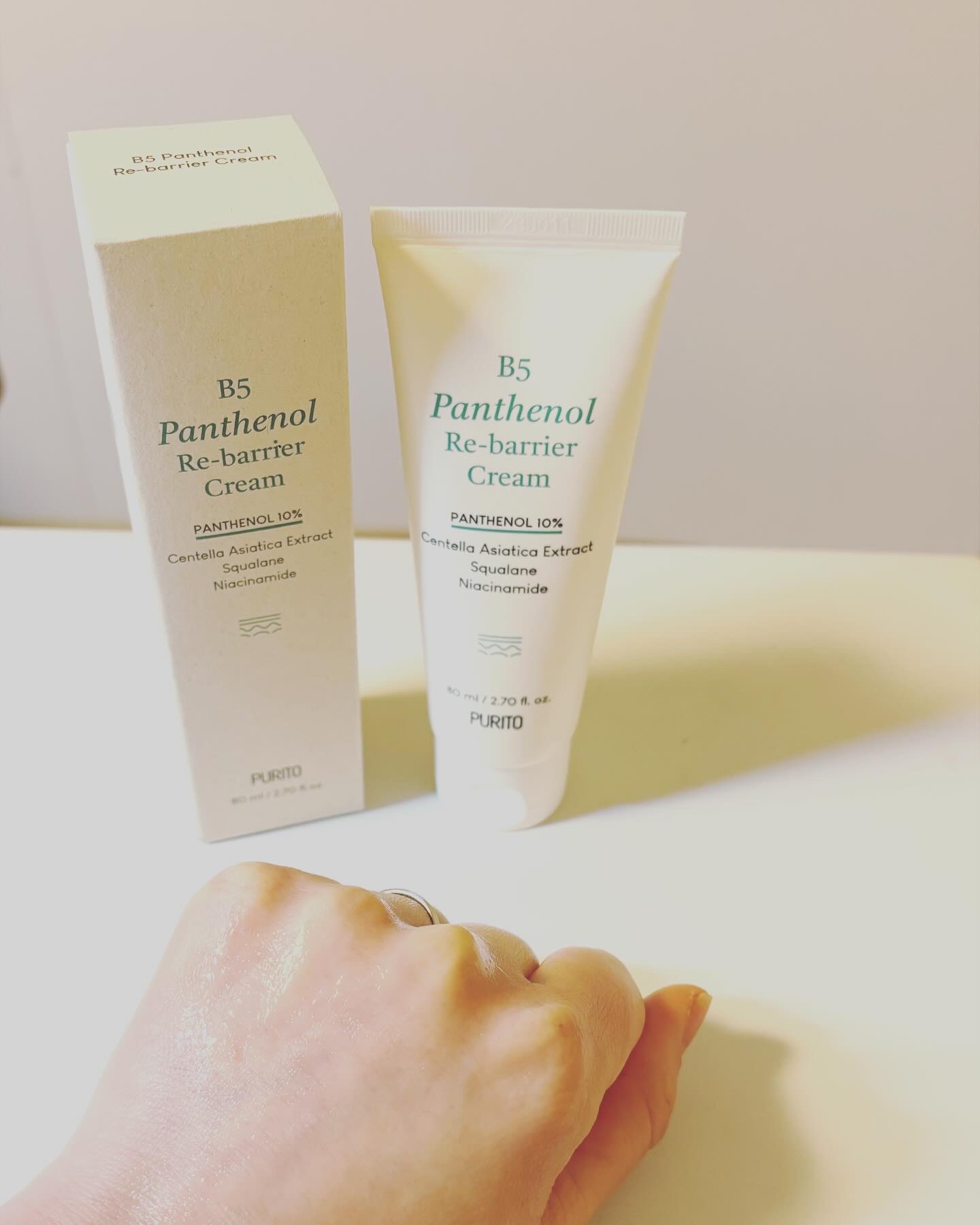 使いきり!PURITOのB5パンテノールリバリアクリーム。お肌にぴたっとすーっとなテクスチャでみずみずしいのにベタつかない、さっぱりめ。パンテノール配合で肌に浸透しやすく、保湿力に優れ肌の水分が蒸発するのを防ぎ、水分保持もできるので肌のバリア...
