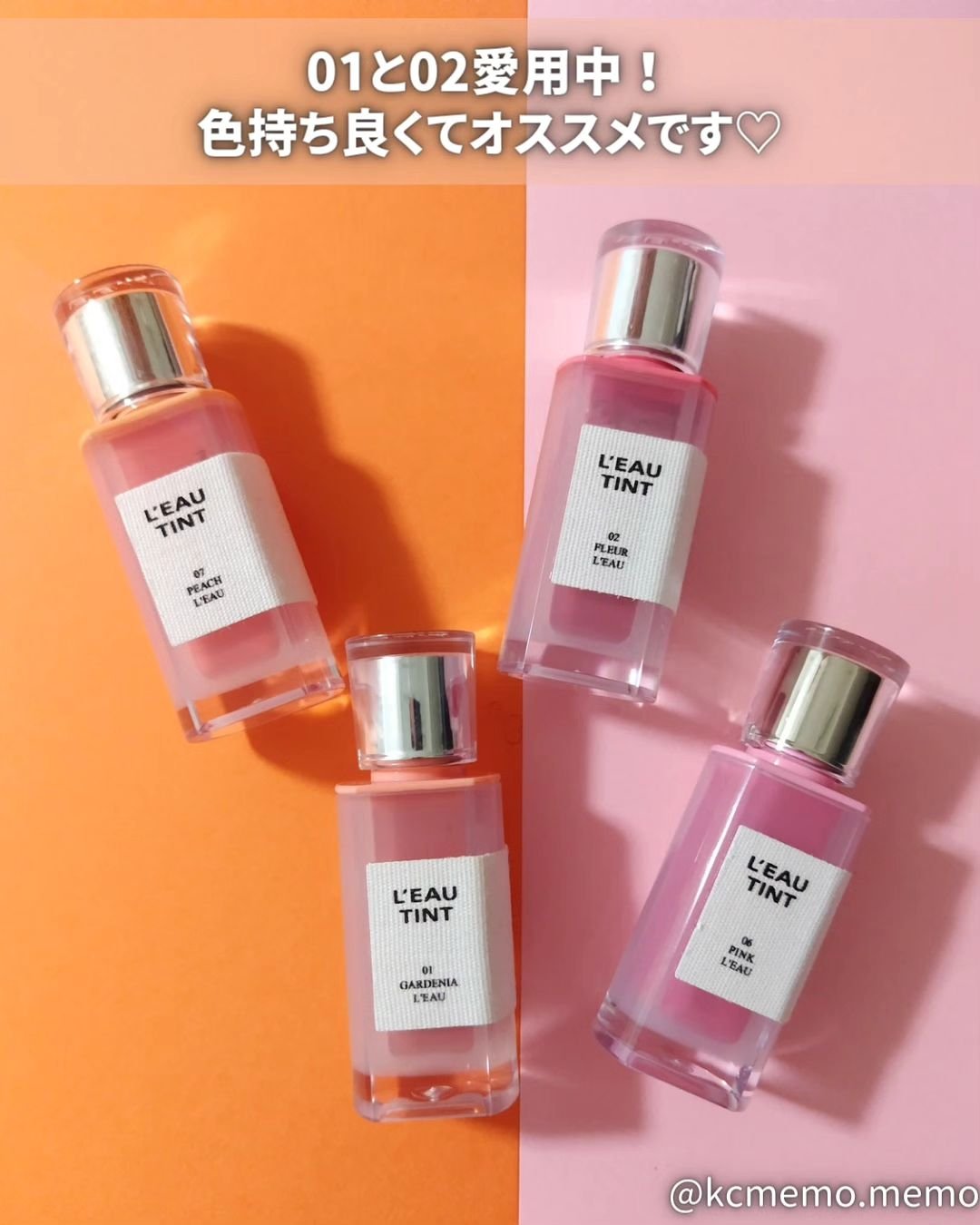 色持ちがとてもいいティント ほんのり甘い匂い(継続時間短め) 艶感が綺麗で色落ちも綺麗 04はピンクレッドのような発色 カラー展開も豊富なため好きな色が選べるところも魅力です!!