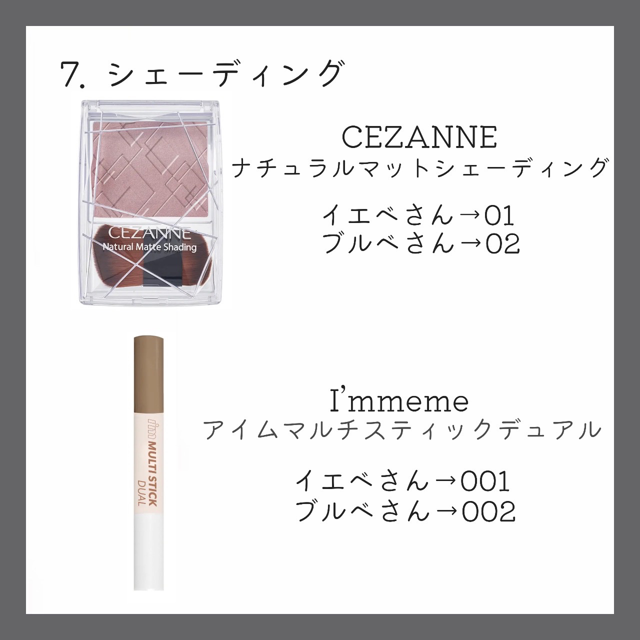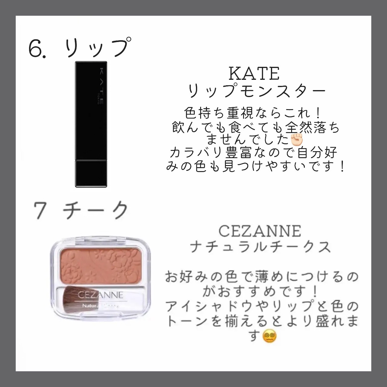 パウダーはクリアがおすすめです 💭 マットタイプの方が素肌感が出ます ! リップ ブルべさんは24 イエベさんは23 がおすすめです ! チークをぬることで自然な血色感が出て統一感もでます !