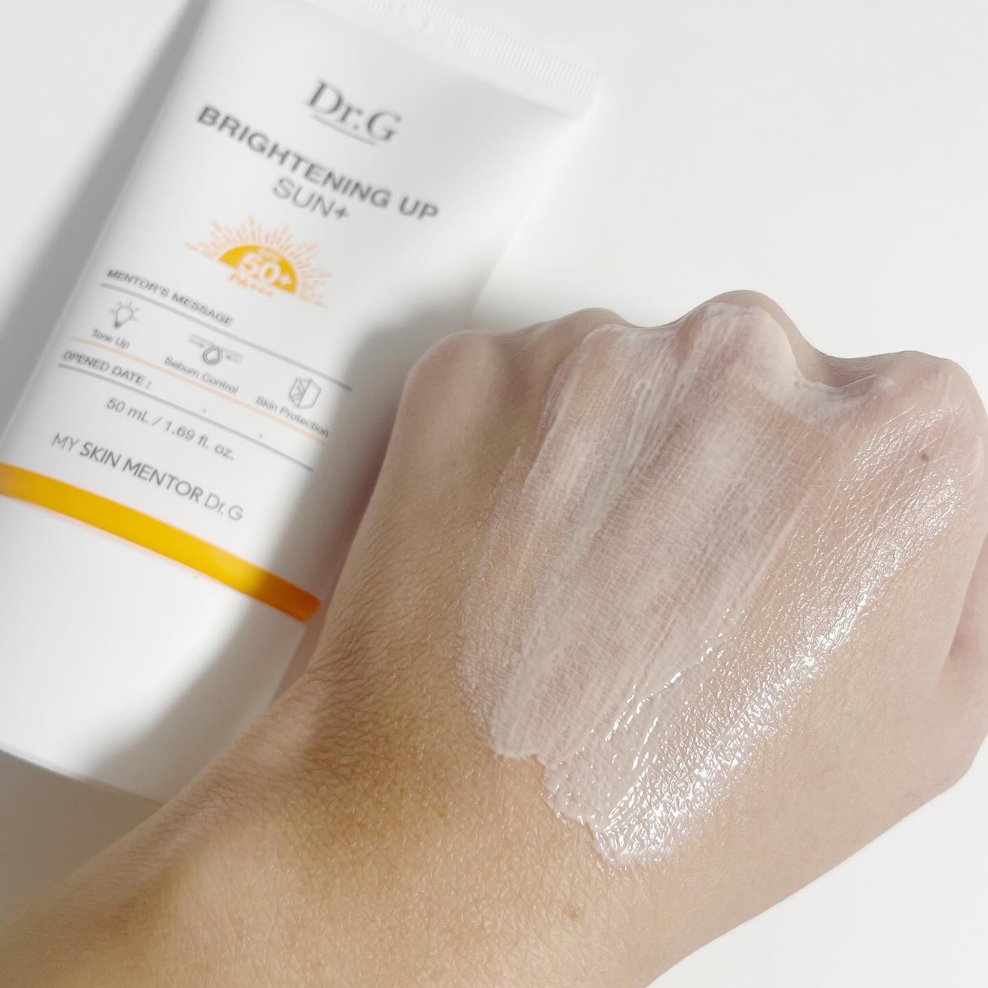 LDKのBestbuy賞にも選ばれた! Dr.Gの下地兼日焼け止め🌿.∘ SPF50+/PA+++でUVカットと同時にほんのりと肌を明るく*みせてくれます✨ ベタつきやきしみ感がなく軽い使い心地で、塗ったあとサラッとしているから、メイクの邪魔にならず下地としても使いやすいです🧡