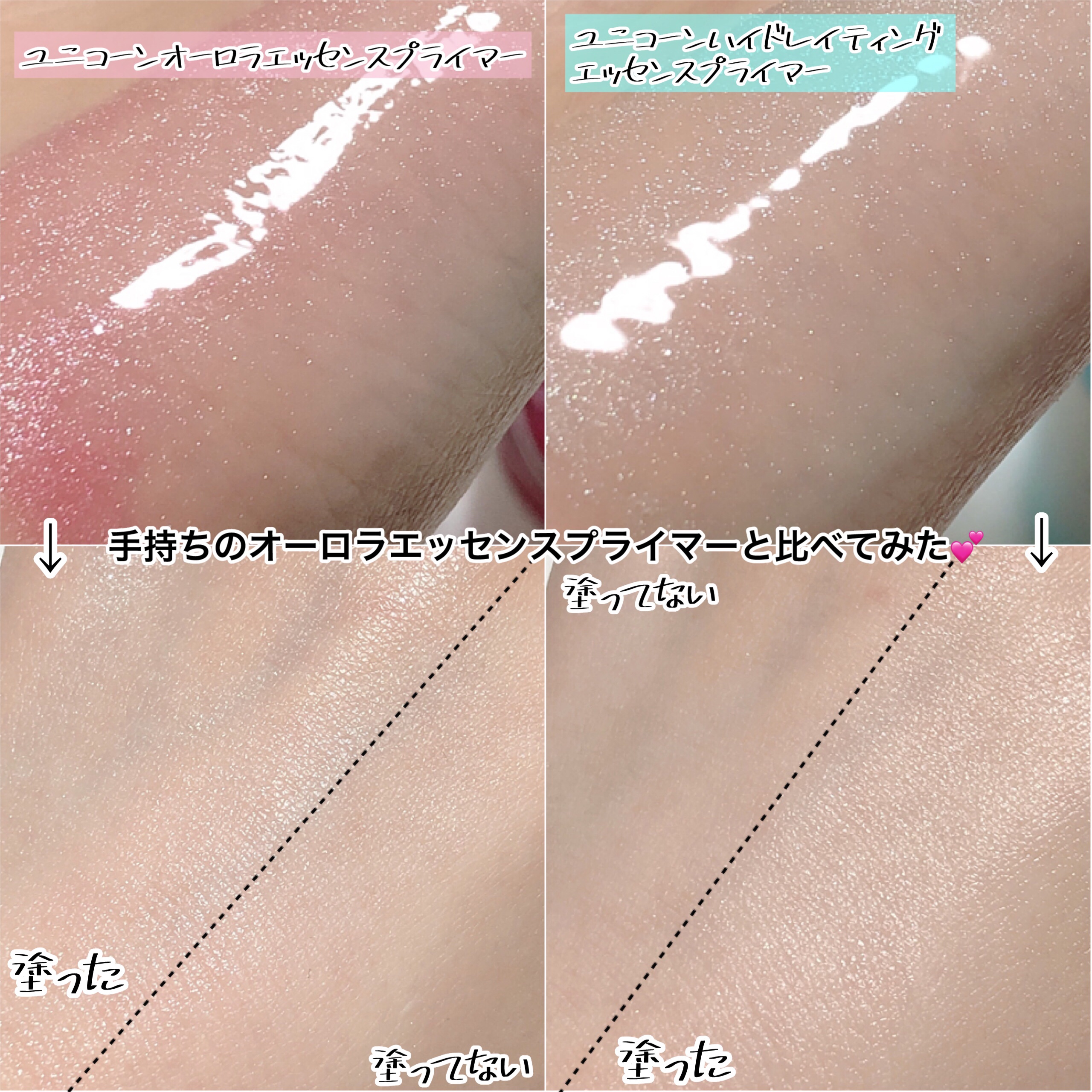 えっこれが?下地!?😳 商品名はユニコーン オーロラエッセンスプライマー。うん、下地。 メイクの密着力アップ◎ツヤの仕込みにも。顔全体に使うことができるんだけど、まぶたや唇にも使用可能👏 ベタつきは一切ないのに内側からじゅわっとした光沢ツヤが生まれるので、メイク仕立てはもちろんだし昼や夜もこのツヤ感で肌がキレイに見える👍