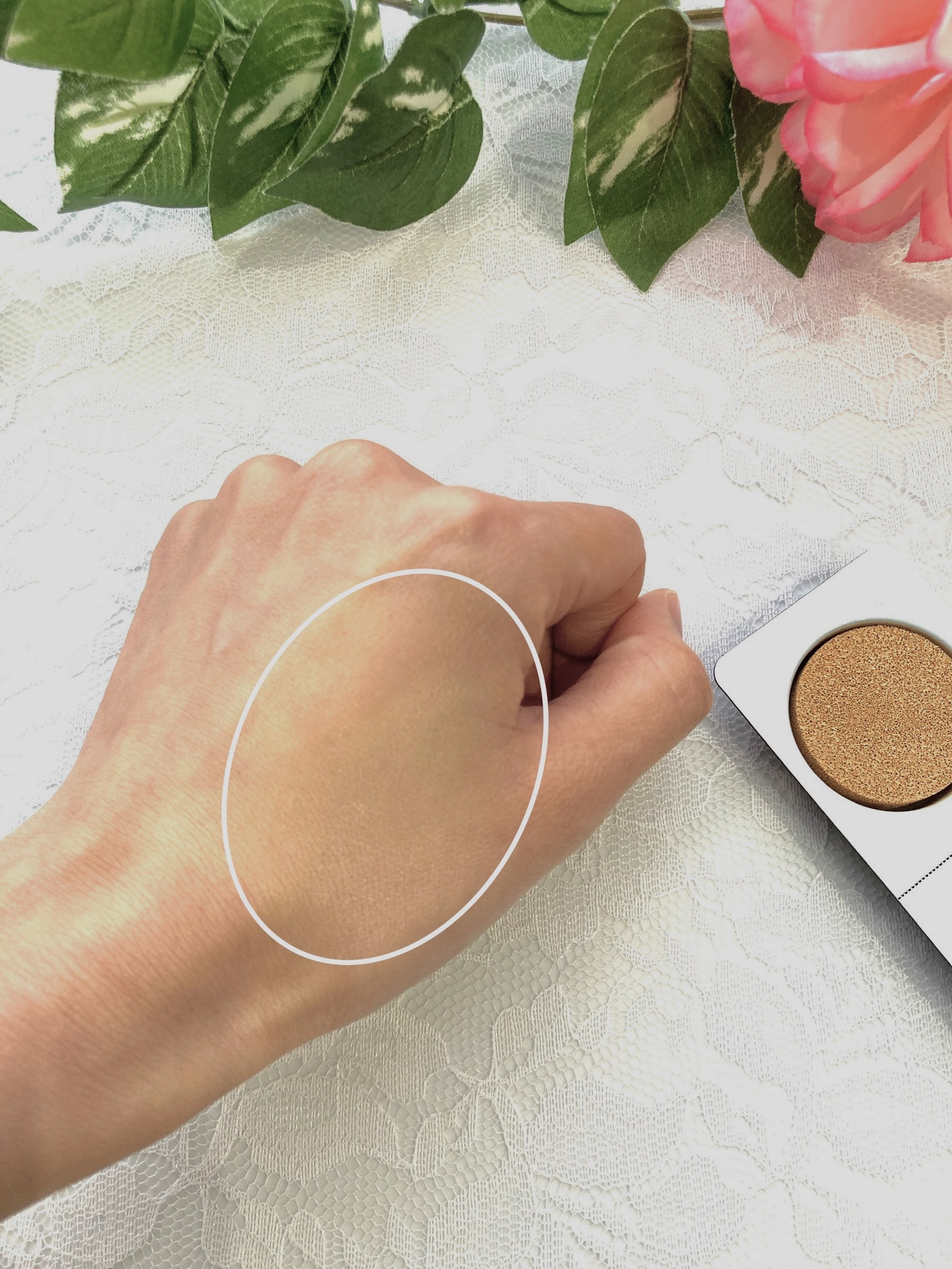 さらさらで伸びが良いテクスチャー。 肌への密着感もあって、ピンクベージュの色みが毛穴のカバーとほんんのりトーンアップも。 クリームのようなテクスチャー。 肌にのせすぎると白っぽくなるので、少しずつ伸ばすのが◎ なめらかテクスチャー。 細かいパールが入ってますが、ギラギラしたりもなく自然な感じ。