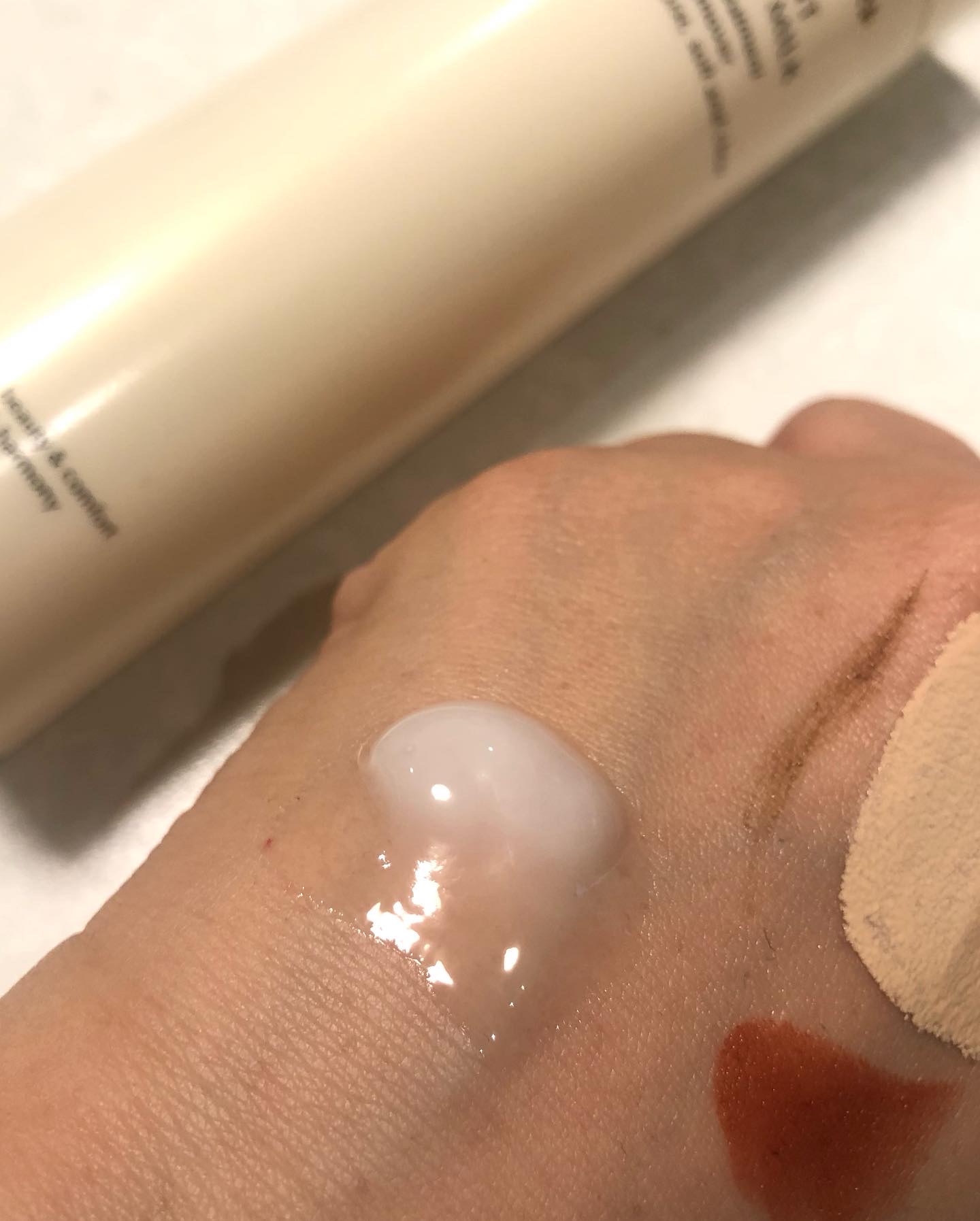 どんなコンディションの肌にも しっとりフィットするメイククリーム 水分を抱えるとより強固な膜になるため 水・汗に強く、マスク使用時の高湿度下でも崩れにくく マスクにも色がつきにくくなります 伸びの良いテクスチャ 優しく軽い着け心地 つっぱらず負担感がありません 薄メイクの時はこれだけで おもっていたよりも綺麗に毛穴をカバーしてくれ頼もしい 崩れにくく使いやすいなと感じました