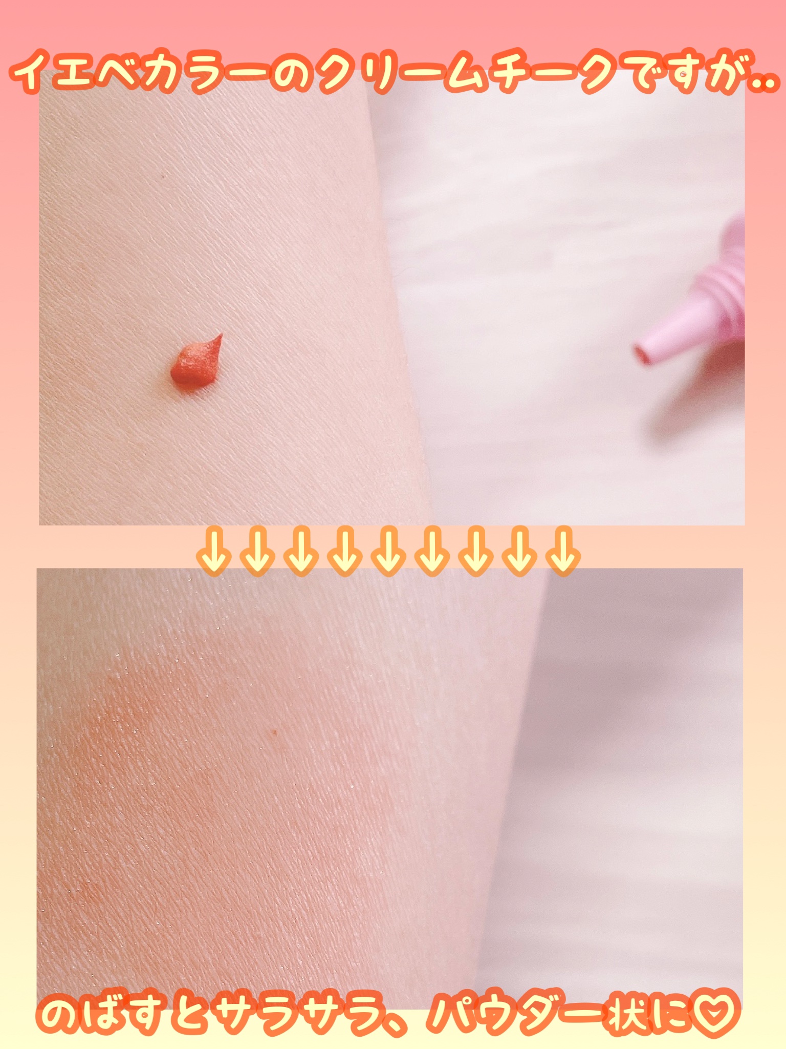 発色も良いし、粉飛びもないし ぷにぷにのクリームカラーが1色と きらきらパウダーが2色、 マットな締め色パウダーが1色の4色パレットで、 何だかとっても使いやすそうではある... ただ、お値段的に仕方がないのだろうけど、 付属のチップがたいへんチープだったので 仕上がりをより良くしたい方は チップだけ別で購入したほうがイィかも😌😌
