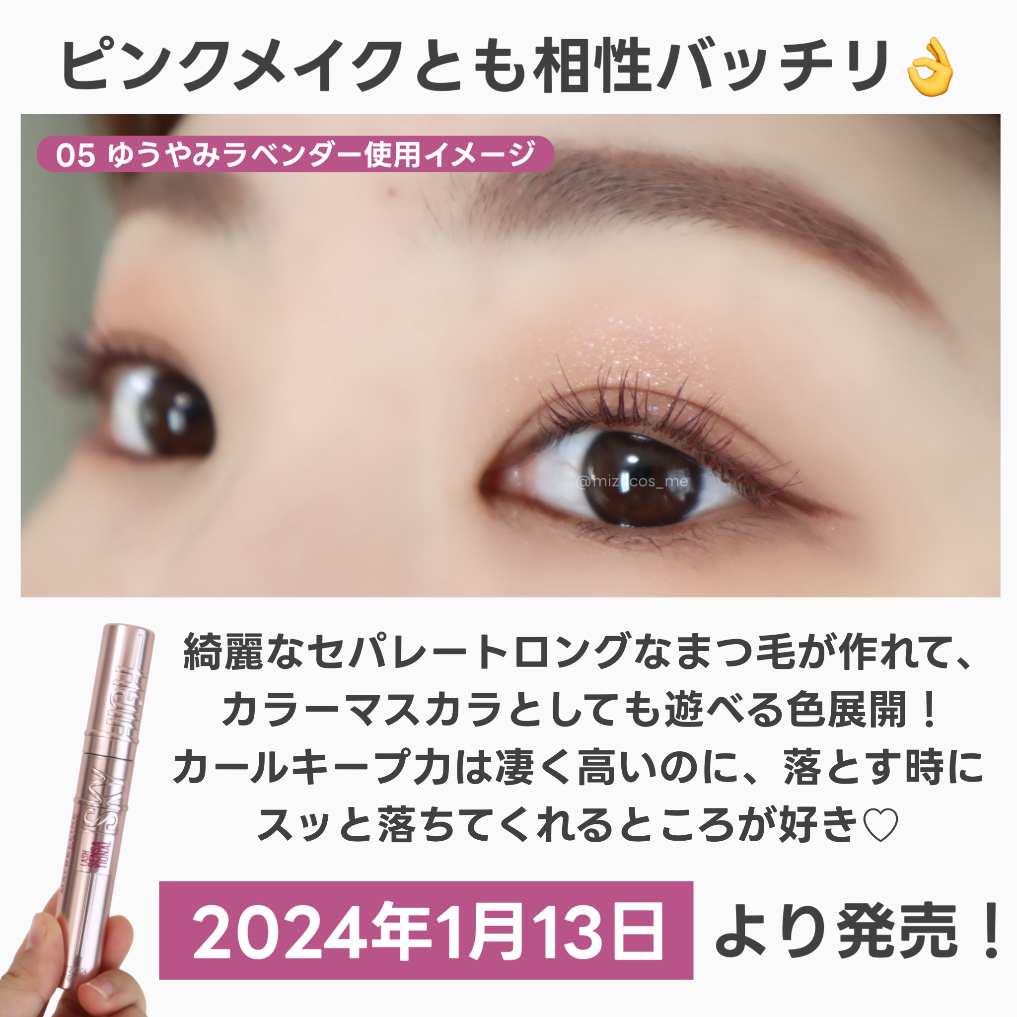 なんと、TikTokやYouTubeなど多彩に活躍されているありちゃん( @niinana27 )さんがアドバイザーとして開発に携わったもの!! 自まつ毛が伸びたかのような自然な仕上がりがとっても良い💓 柔らかいマスカラ液がまつ毛にもしっかり絡んで1本1本スッと伸びる感じ! 私のまつ毛はかなり下がりやすいだけどこのマスカラ液は軽いからかなりカールキープ力もあると感じたよ🙆♀️ 繊細なロング効果には期待できるから個人的には大好きな仕上がり💕