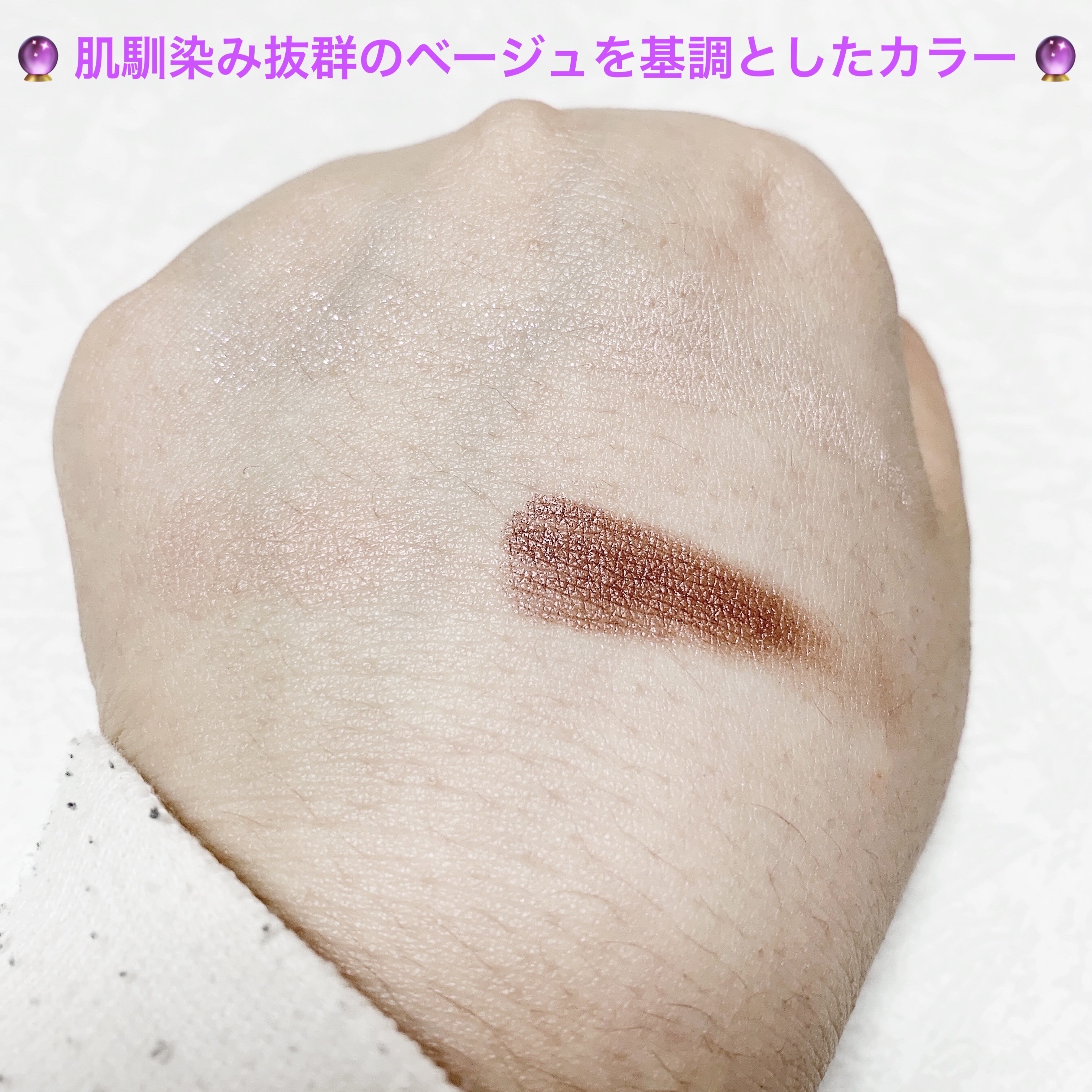 - ラメ・パール・マット3質感の4色アイシャドウ。 肌馴染みの良いベージュを基調としたカラー。ラメ・パール・マットの3質感を重ねて、自然にまぶたを強調し奥行のある大きな目元へ。 しっとり溶け込むような柔らかなパウダーなので、スルスル伸びてまぶたにピタッと密着。保湿成分(スクワラン・ホホバ種子油)配合。