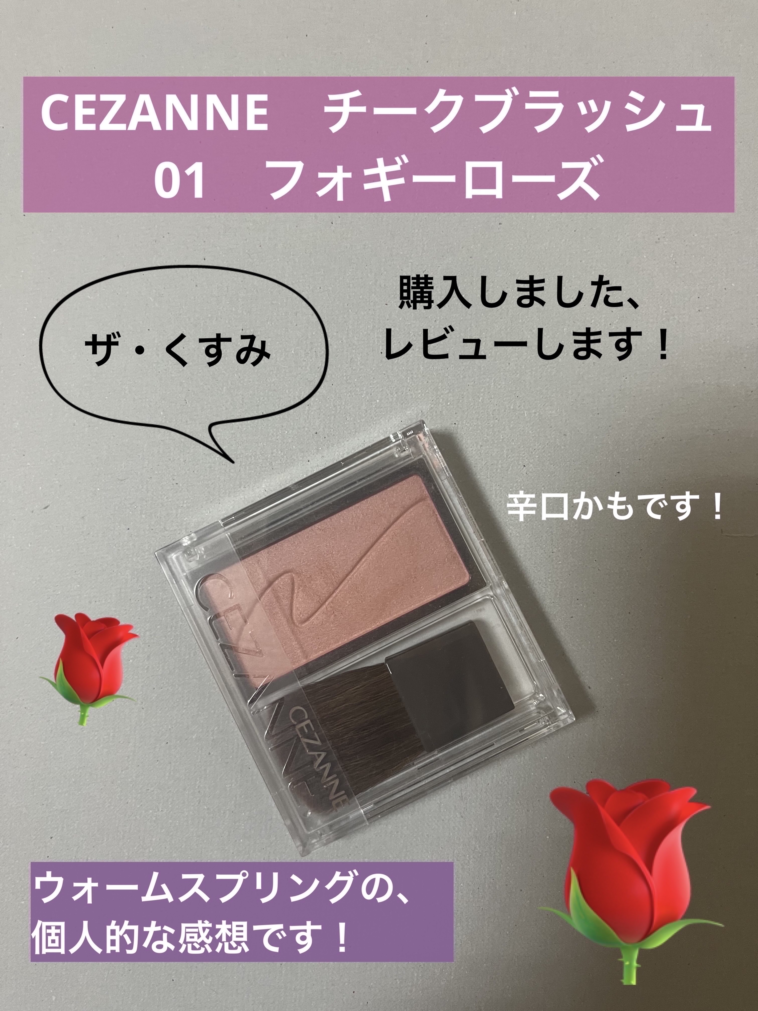 CEZANNEチークブラッシュ01フォギーローズを購入しました!チークがなくなりそうだったのでデパコス並みのチークだと聞いて、気になってたCEZANNEのチークブラッシュにしました!値段は¥550と安いのに粉の質感も良く色味が可愛いと思いまし...