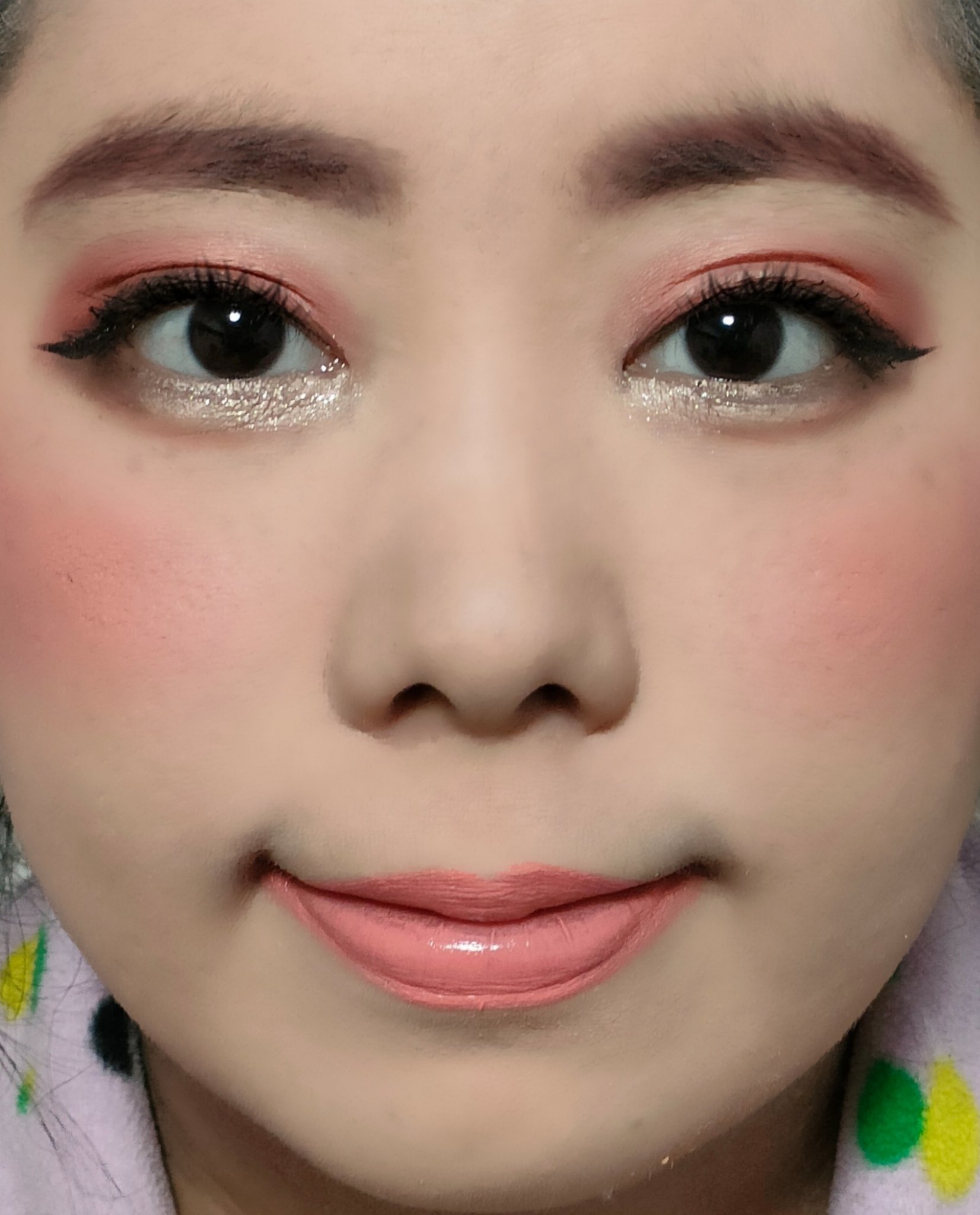 アイシャドウパレットは、URGLAM UR GLAMBLOOMING EYE COLOR PALETTE 02を、使用しました。 マスカラは、MAYBELLINE NEW YORK コロッサルボリュームエクスプレスを、まつ毛全体にまんべんなく塗ります。 リップは、wet 'n' wild MegaLast Lip Colorを、唇全体にまんべんなく塗ります。
