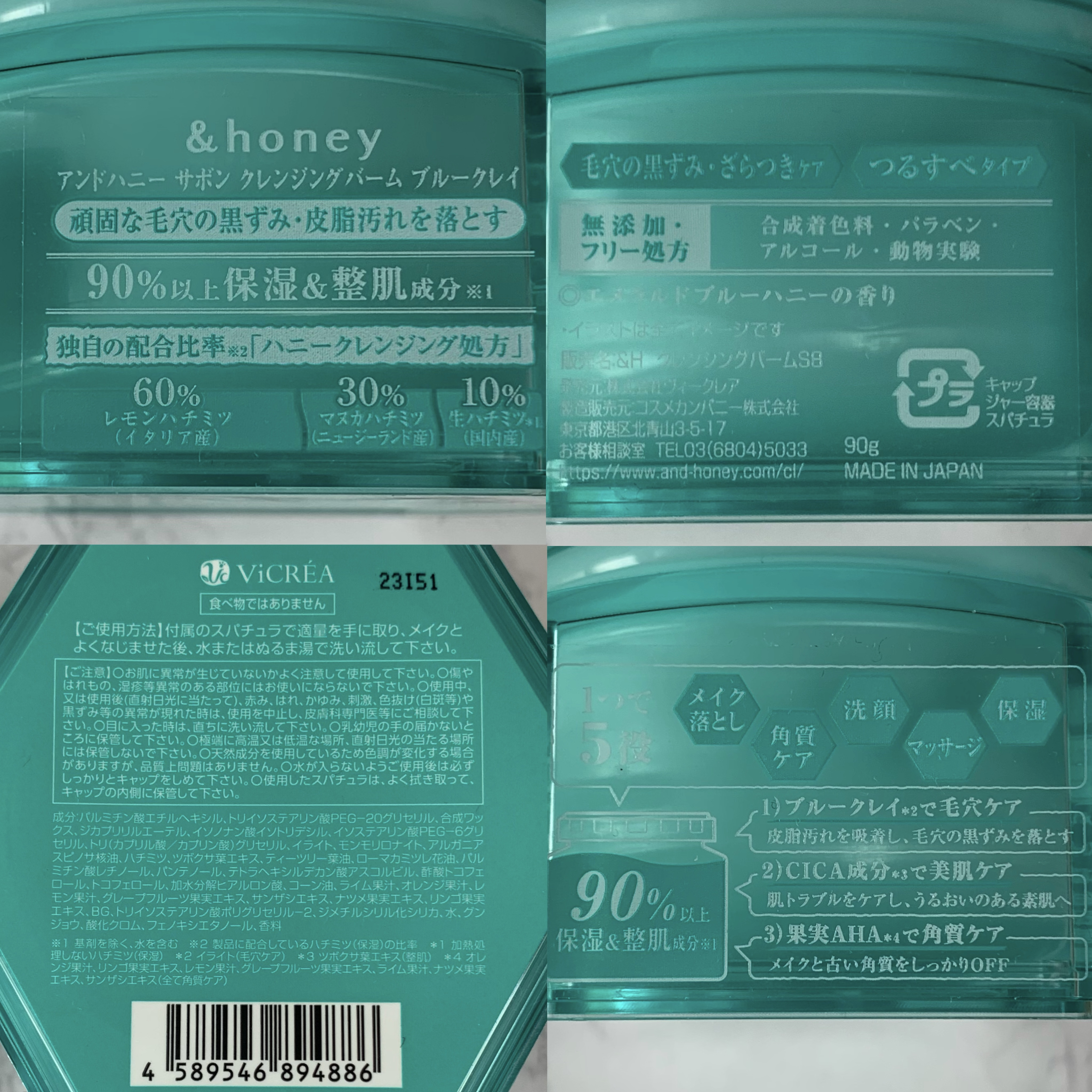 商品詳細情報&honey アンドハニー サボン クレンジングバーム ブルークレイ
