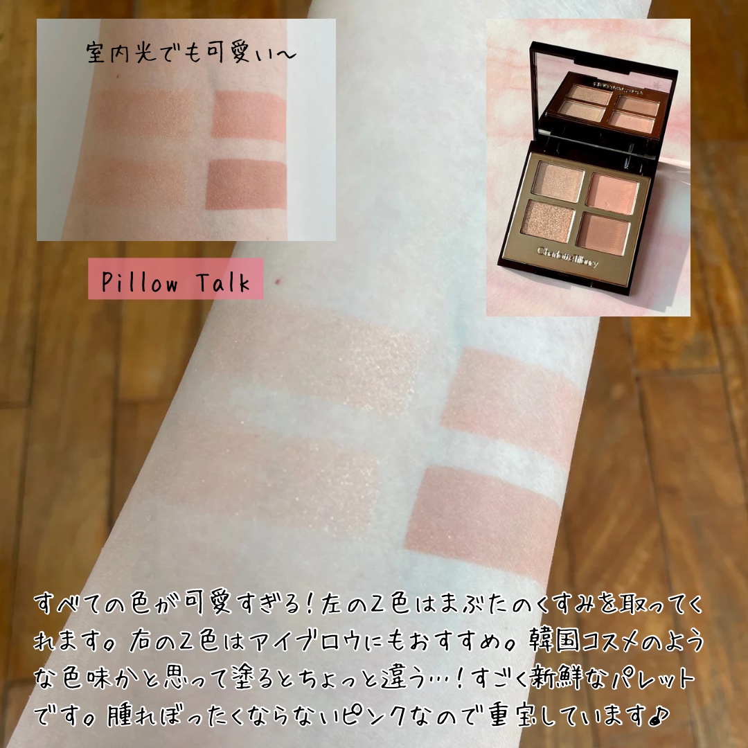 シャーロット・ティルべリーは、イギリス🇬🇧のメイクアップアーティストが立ち上げた化粧品ブランドです。 他にも魅力的なアイテムがたくさん! 特にLuxury Palette of Pops in Pillow Talkはそのラメ感に魅せられます。 派手すぎるかと思いきやシアーな質感でまぶたを大人っぽく自然に彩ってくれます。 組み合わせが楽しいアイシャドウです♡
