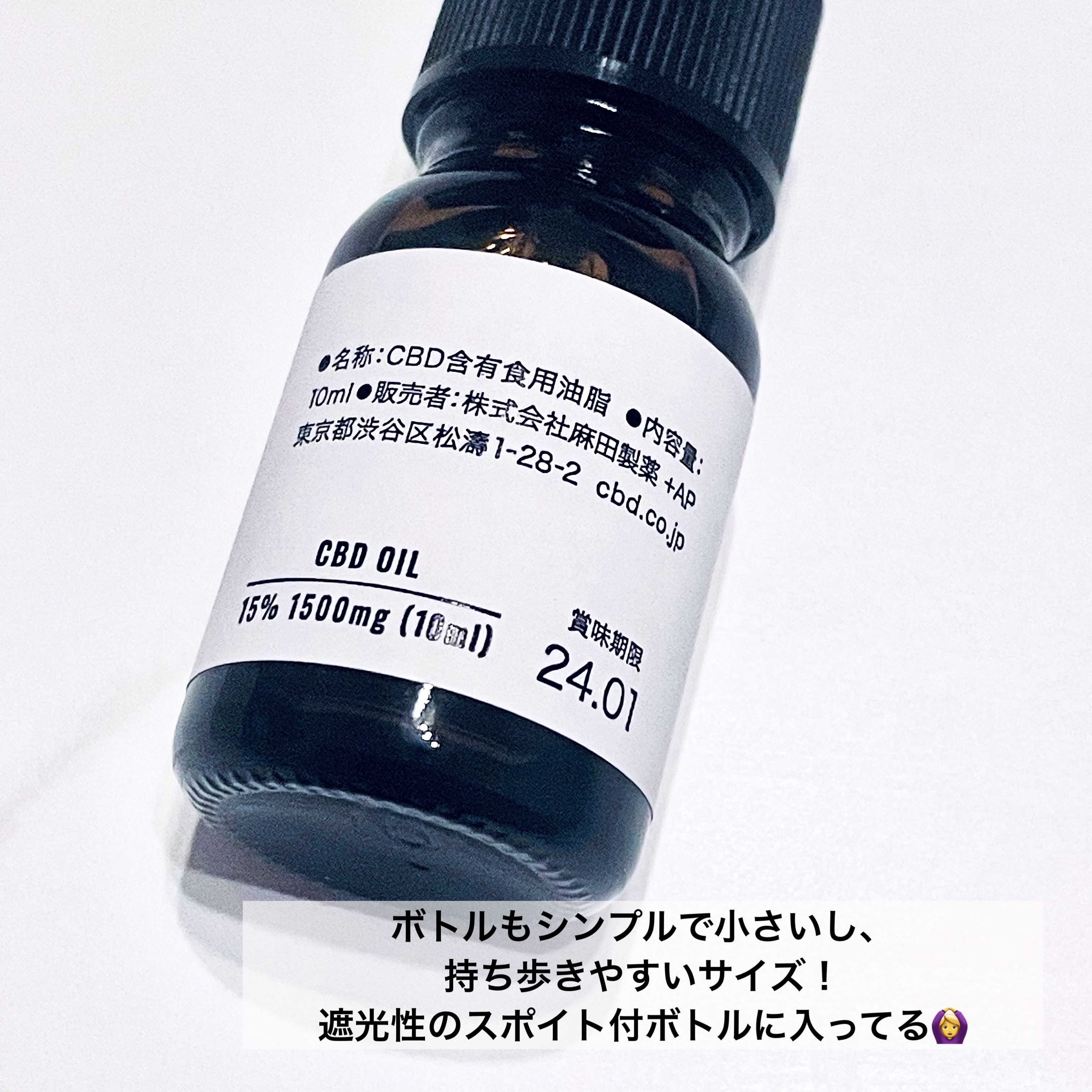 純度99%以上の高純度CBDが使われており、GMP認証された日本の工場で安全性の高い品質管理を行なっているそうです 完全オーガニックなのは嬉しいポイント☺️ 実際に口に入れてみるとほぼ無味無臭でさらさらとして飲みやすかったです!