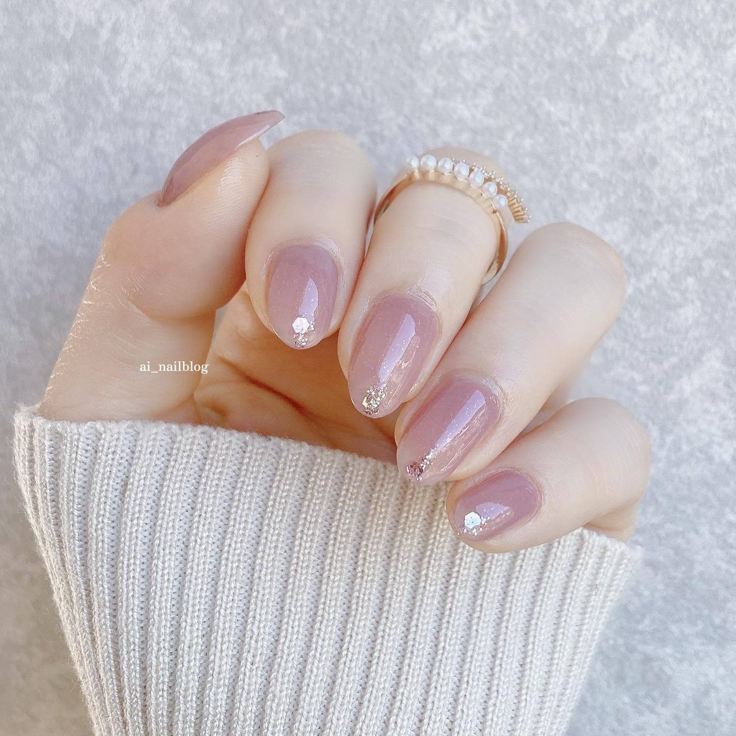 お上品なパールで可愛い☺️ 右からワンカラーのところは1~3度塗りで分けてみました! もっとお上品な感じになった☺️ オフィスネイルにもキレイめの服装にもぴったりです! ファンデーションネイル #キャンメイク #canmake #大人ネイル