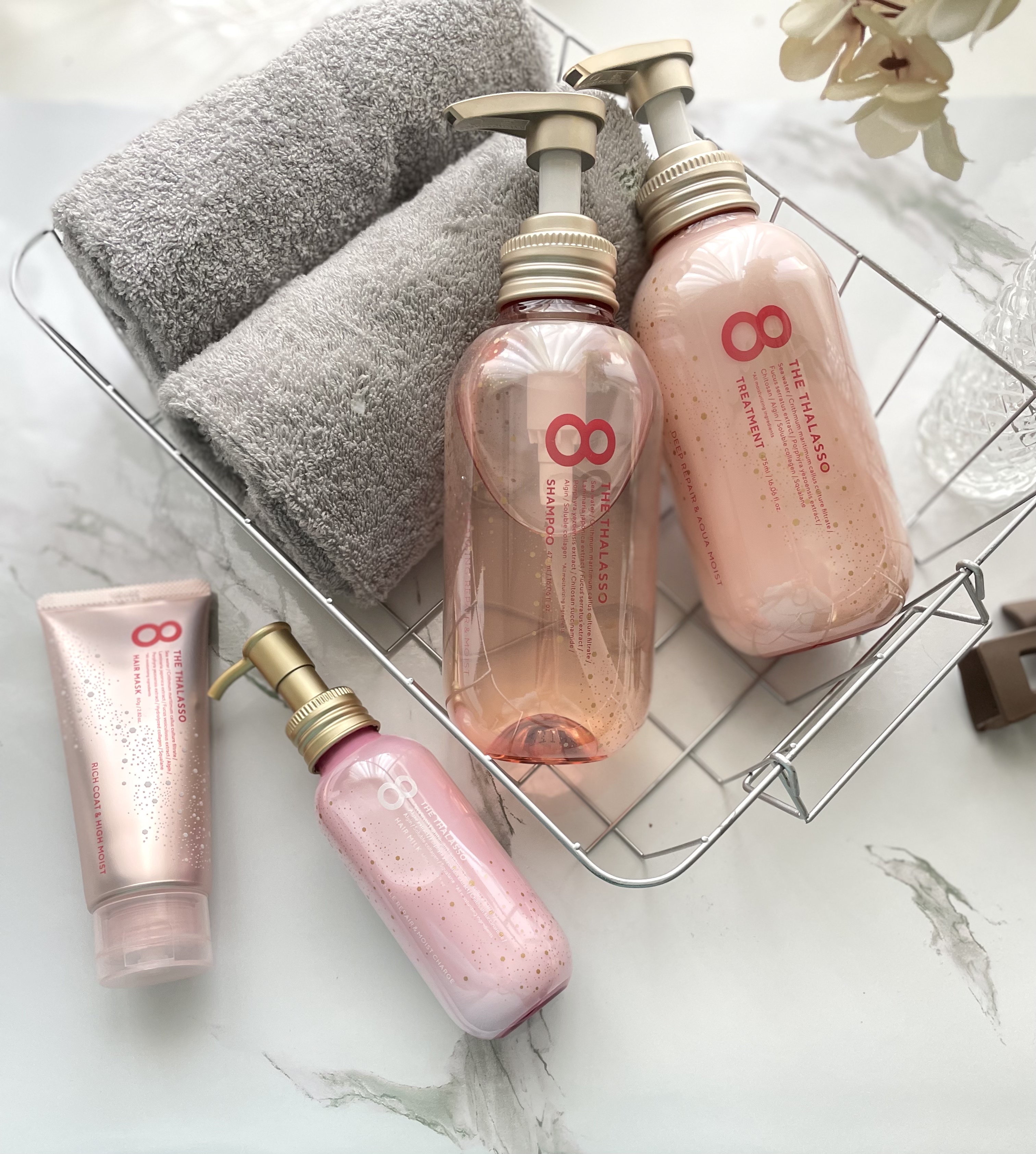 商品詳細情報エイトザタラソ モイストシャンプー&モイストトリートメント ミニヘアマスク付き ピンクリラックス 限定キット