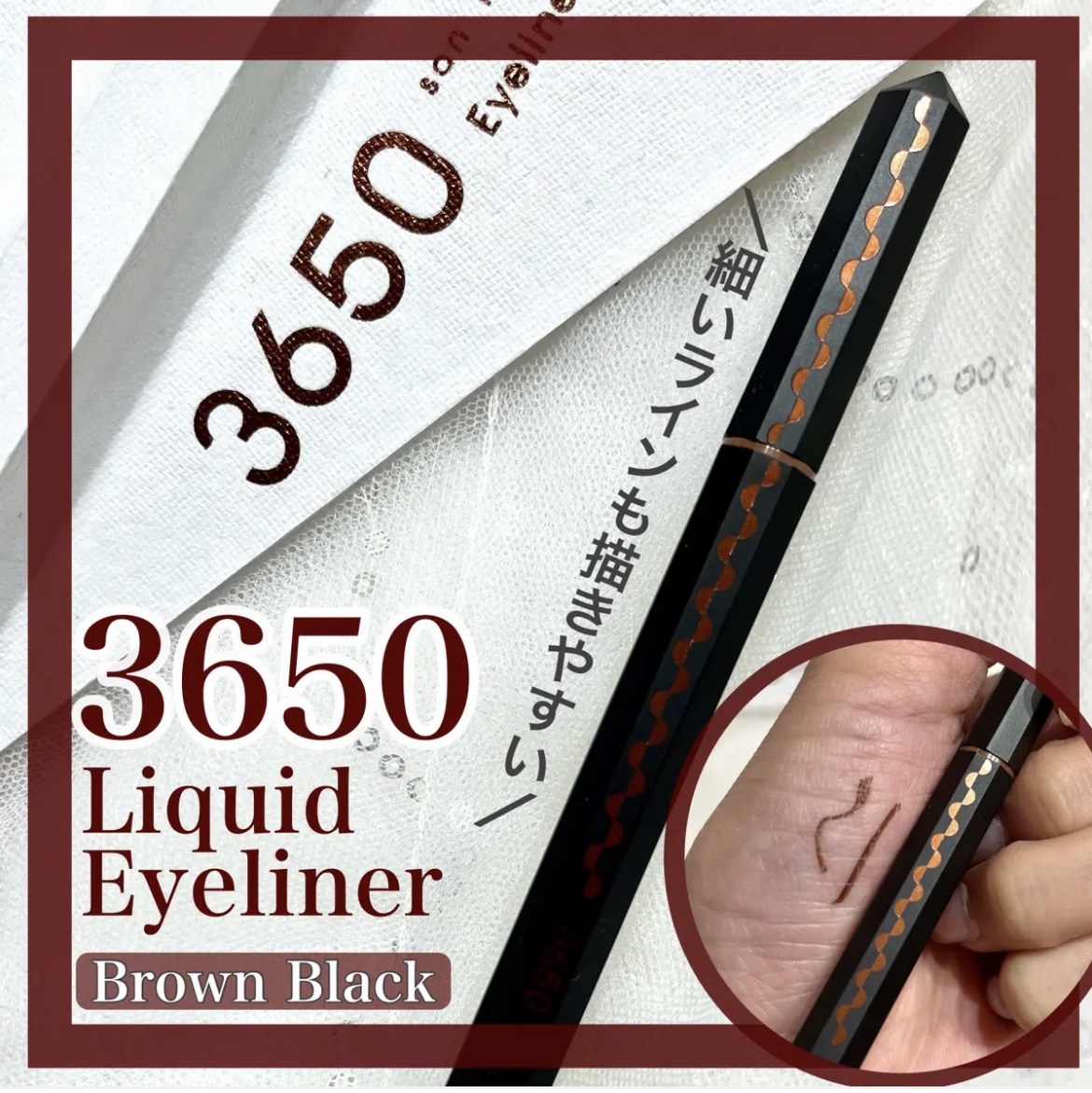 ⋱ほんのりあま〜いブラウンライナーꔛ♡⋰3650様からリキッドアイライナー(チョコブラウン)を頂きました🍫ありがとうございます🙇🏻♀️❥3650リキッドアイライナーチョコブラウン1650円(税込)3650のリキッドアイライナーから新色...