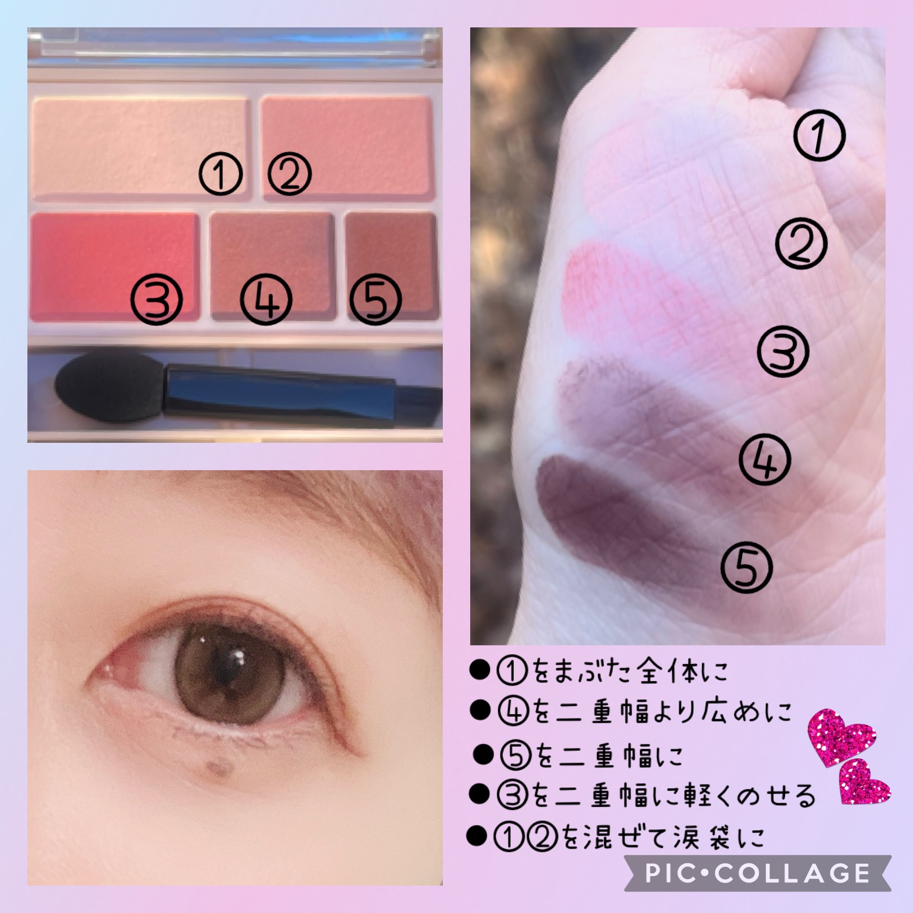 アイメイク、これ1つで完了♡ アイシャドウ・アイブロウ・アイライナーとマルチに使えるラメなしマットな5色入りアイシャドウパレット 明度の違う同系色ブラウンで構成されたパレットなので、きれいなグラデーションが簡単に完成。 カラバリ多いし、安いから買いやすくて良いですが、粉がサラサラすぎて使いづらかったので、リピはなしかな🥲