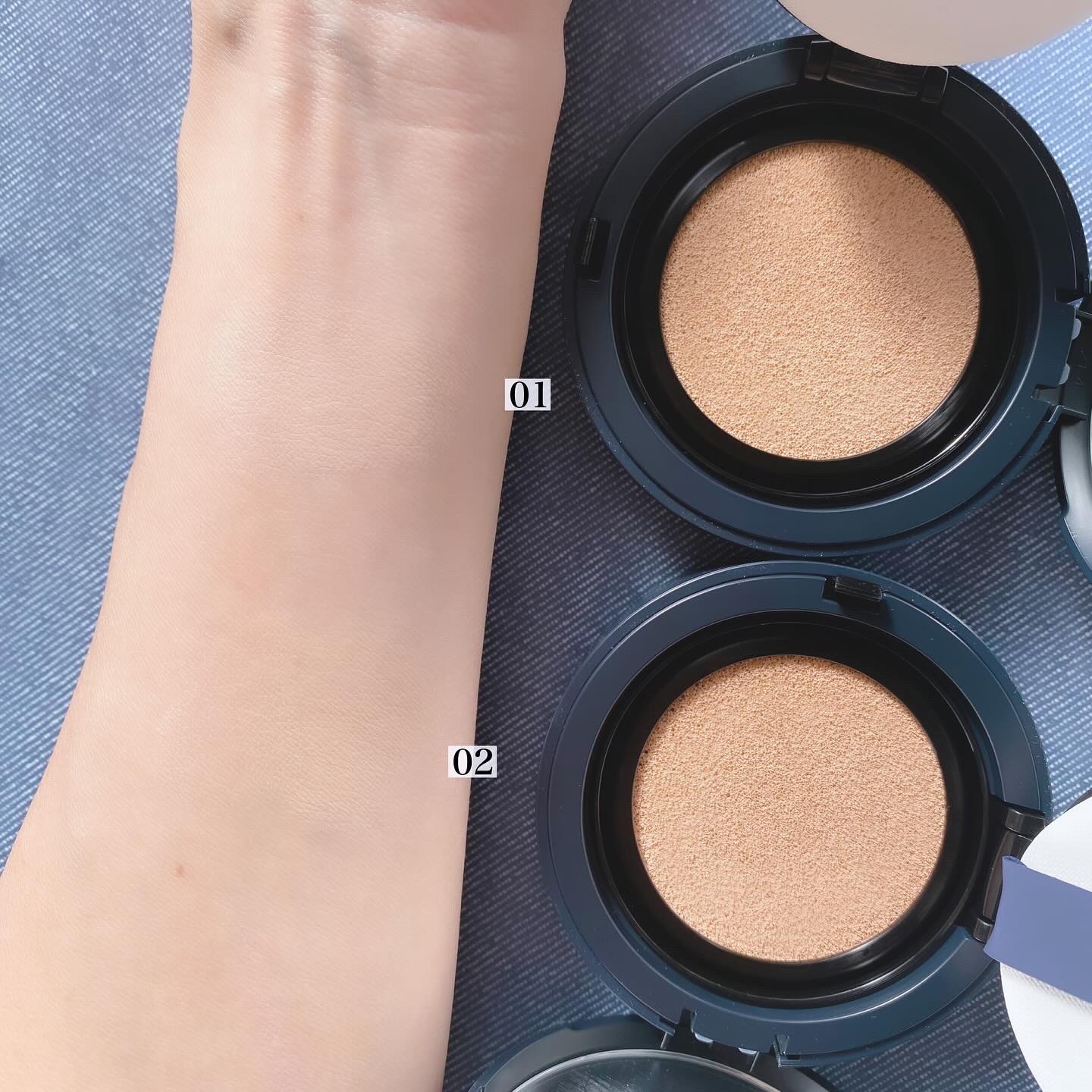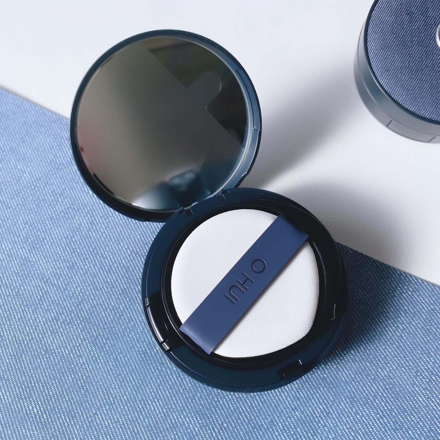 デニムのパッケージが可愛い👖 クッションファンデ🤍 リアルなデニム生地のデザイン💙 1回塗っただけで薄くなじみ密着して仕上がりもナチュラル✨ くすまず長時間メイクアップが続くのも嬉しい🫶🏻ˎˊ˗