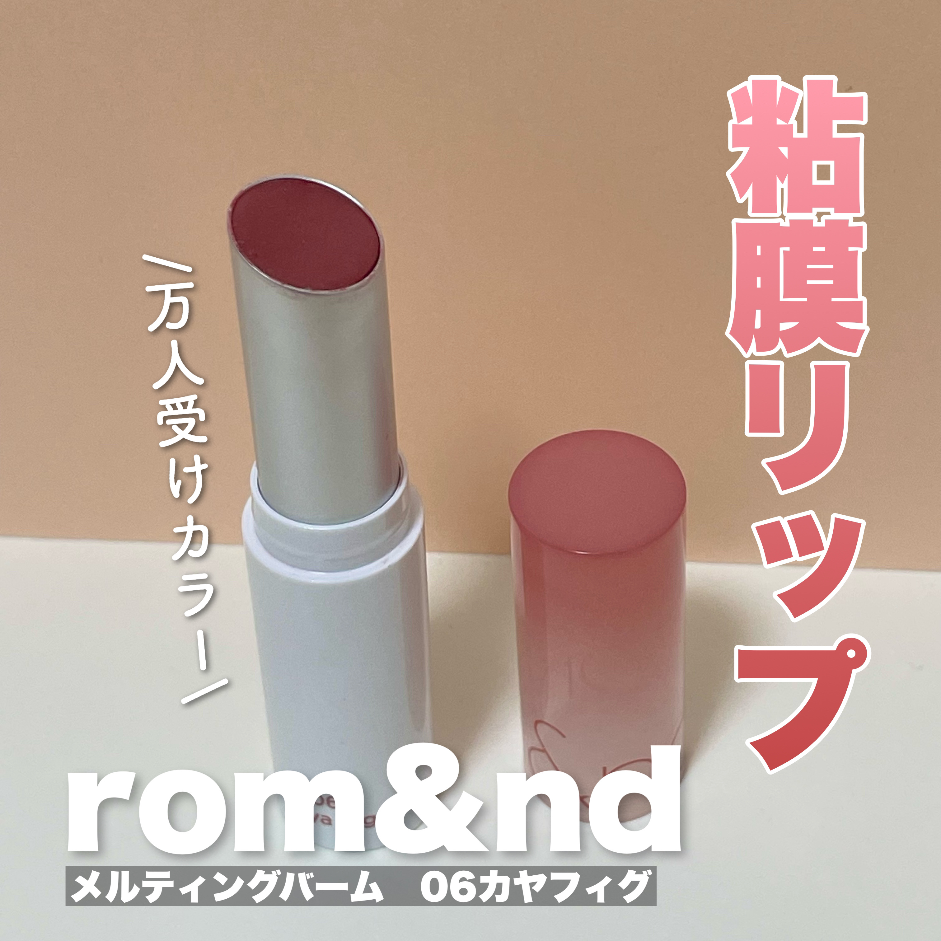 ブラックパケが可愛い♡とろけるバームでぷるつる唇に💄💕🖤rom&nd×INAPSQUAREグラスティングメルティングバーム06カヤフィグ06番のカヤフィグはイチジクのようなソフトローズカラー🌹♥️1stブルベ夏、2ndイエベ春の私にはピッタリ...