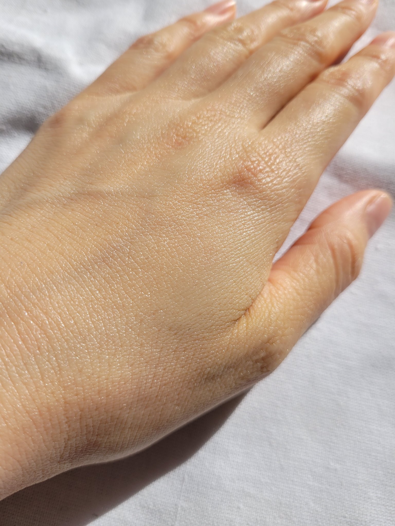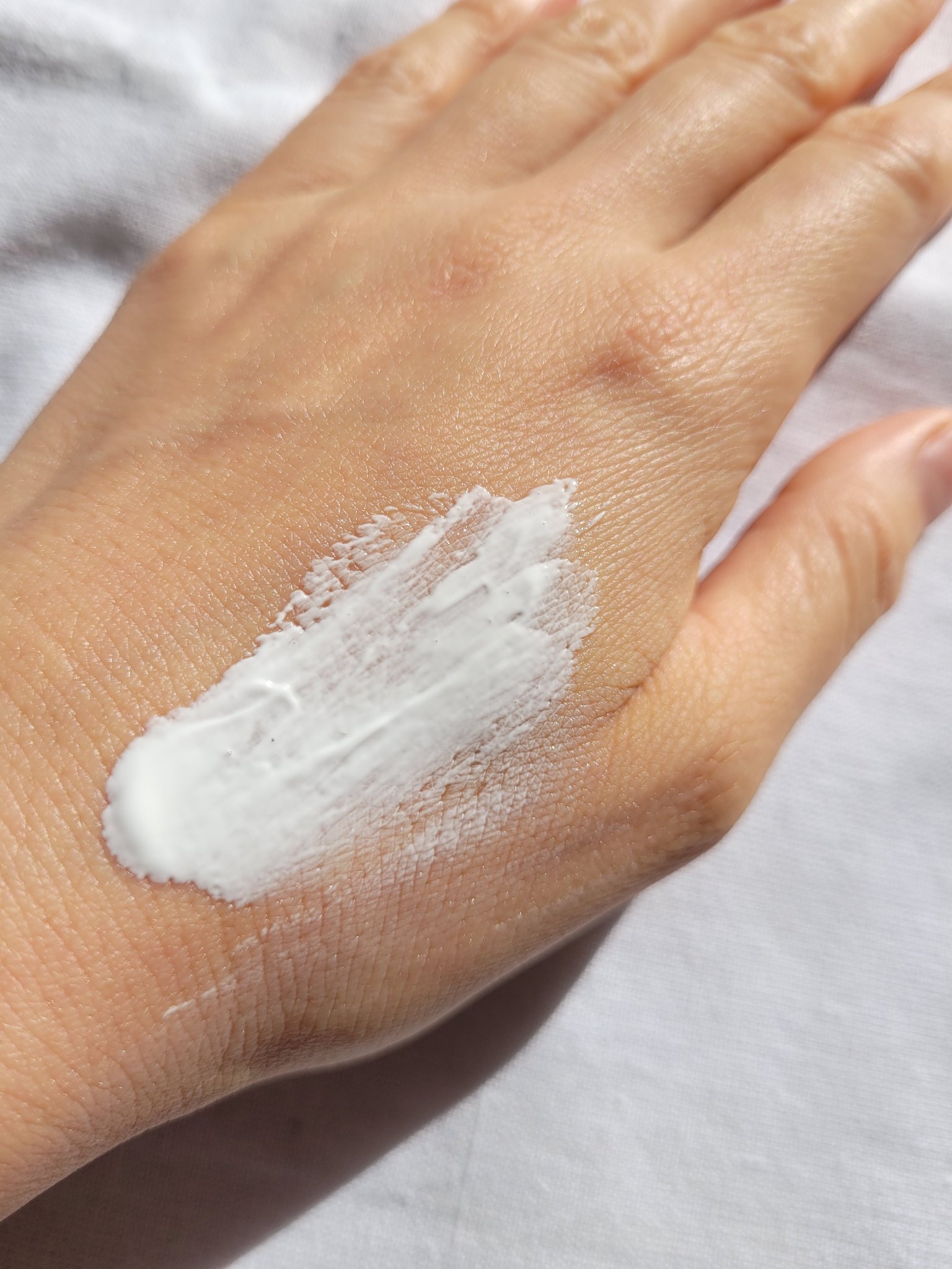 柔らかいテクスチャーで塗りやすく、白浮きしにくい+モロモロも出にくいのでメイク前に使いやすいなと思いました😊✨軽いつけ心地な所も◎🙆♀️ ほのかに香りがしますが、時間が経てば薄れていきます👌