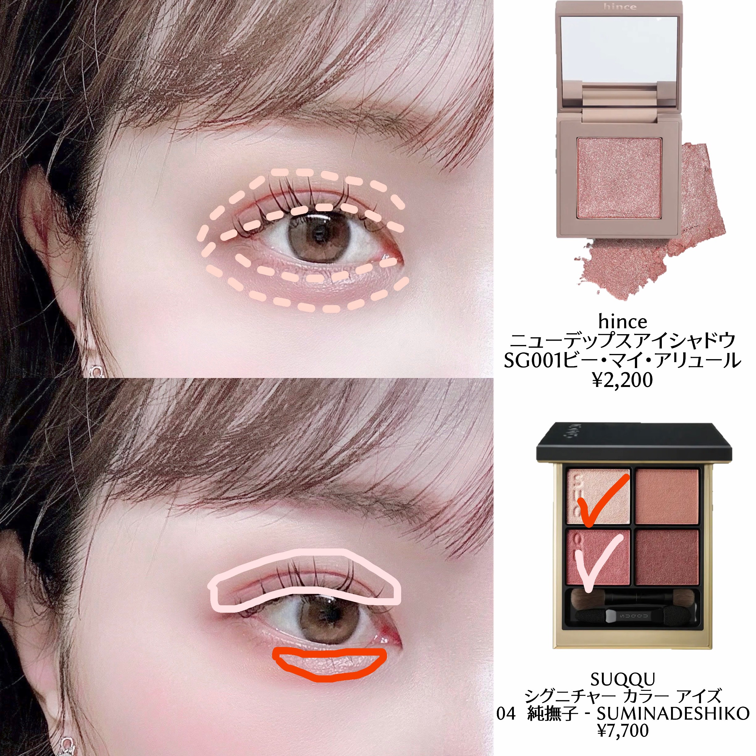 ワンホンはハッキリした色味(赤系)で全体的に濃いめに乗せていくのがポイント! ベースメイクはとにかくマット!白肌を意識! アイメイクは束感まつ毛を作って赤系アイシャドウでキリッと大人っぽいイメージになるように! とにかく白いお人形さんのような陶器肌を作る! 鼻筋にハイライトをしっかり入れる! まつ毛はとにかく上向き!束感を!