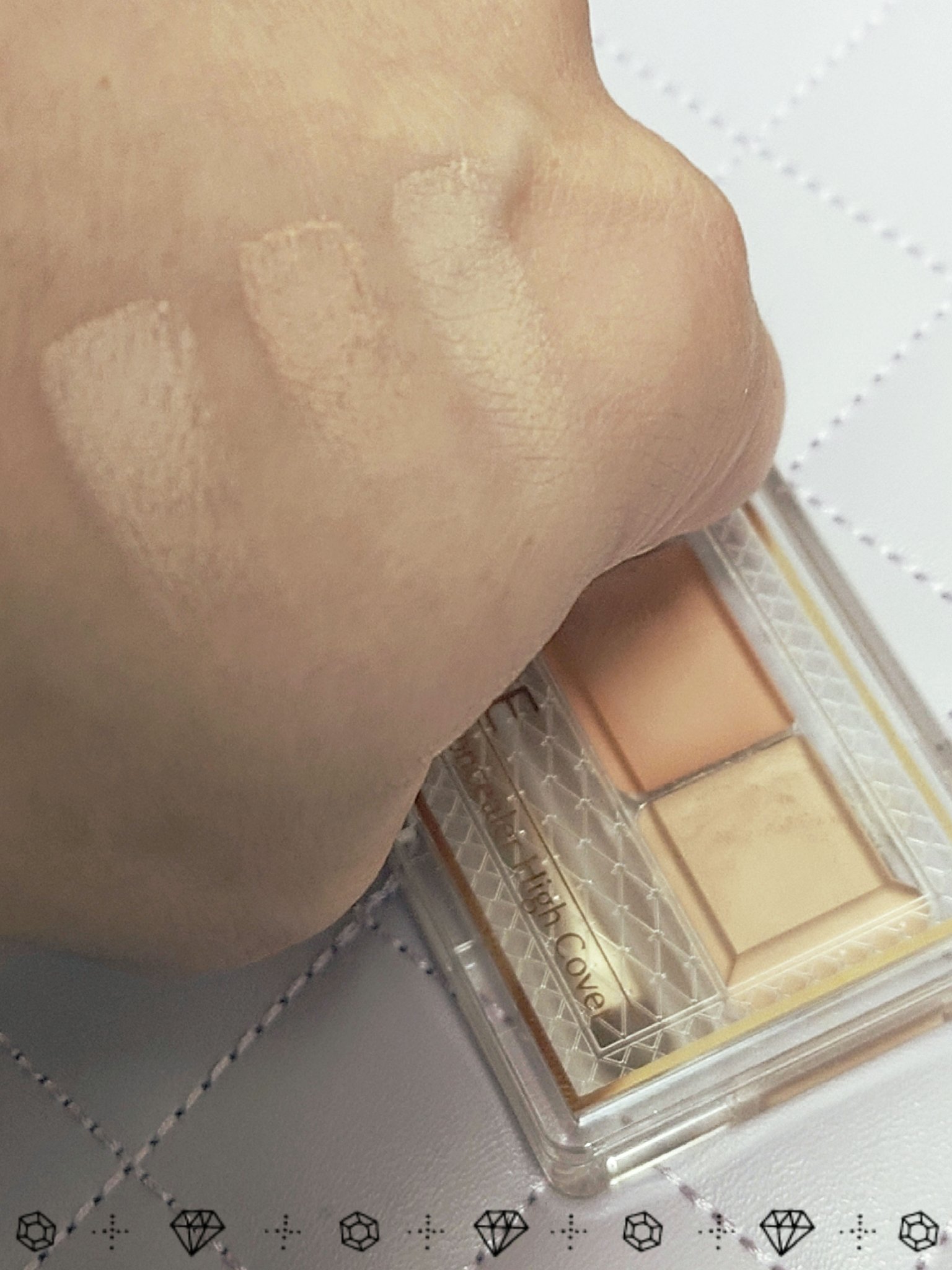 肌色や悩みに合わせて色を混ぜることで、自分の肌色に合う色が作れます❗️ 高カバー、高密着タイプ。左から、くすみ、クマ、シミのカバーに適したカラー 両端ブラシ付きです。広範囲には大きめのブラシで、小鼻のわきや目・口角のキワなど、細かい部分には小さめのブラシを使うのがおすすめ。 塗ったあとは良かったのですが、時間が経つにつれ粉吹きみたいな感じでした。
