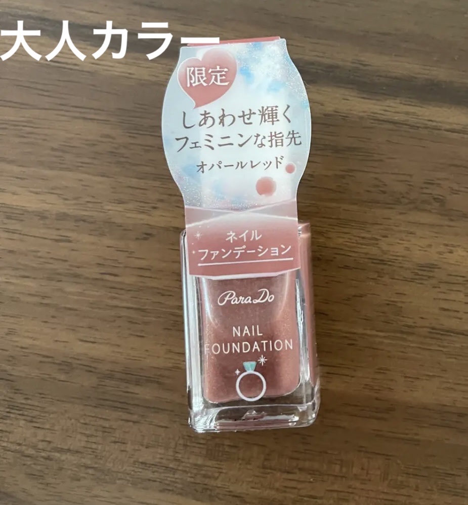 自分のメモ代わりに!今週のネイルはParadoのネイルファンデーションのRD01オパールレッド!グラデーションっぽく塗ってみた!肌が白く見えるし、大人っぽくお上品なお色味!イエベでもブルベでもどっちでもきれいに見えそう!細かいラメがとってもち...
