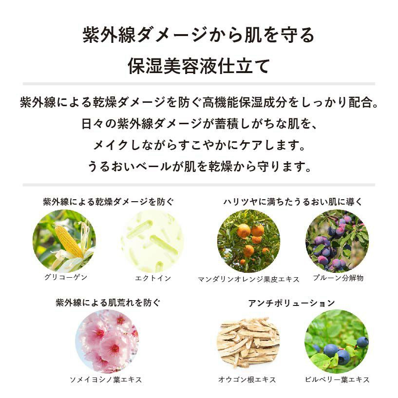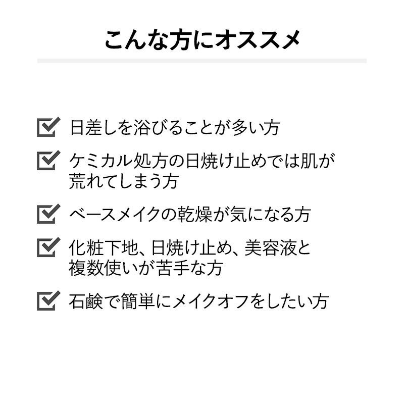 - ブランド最高レベルの紫外線カット効果を実現した、化粧下地・日焼け止め・保湿美容液の効果を持つ万能プライマー。 微細なパールが肌に溢れるようなツヤを与え、ハリのある生き生きとした肌感を演出します。 日焼け止めにありがちなきしみや乾燥、白浮きを防ぎ、保湿成分が長時間うるおいをキープ。 ノンケミカル処方で肌にやさしい使い心地で、石鹸とお湯でオフできます。