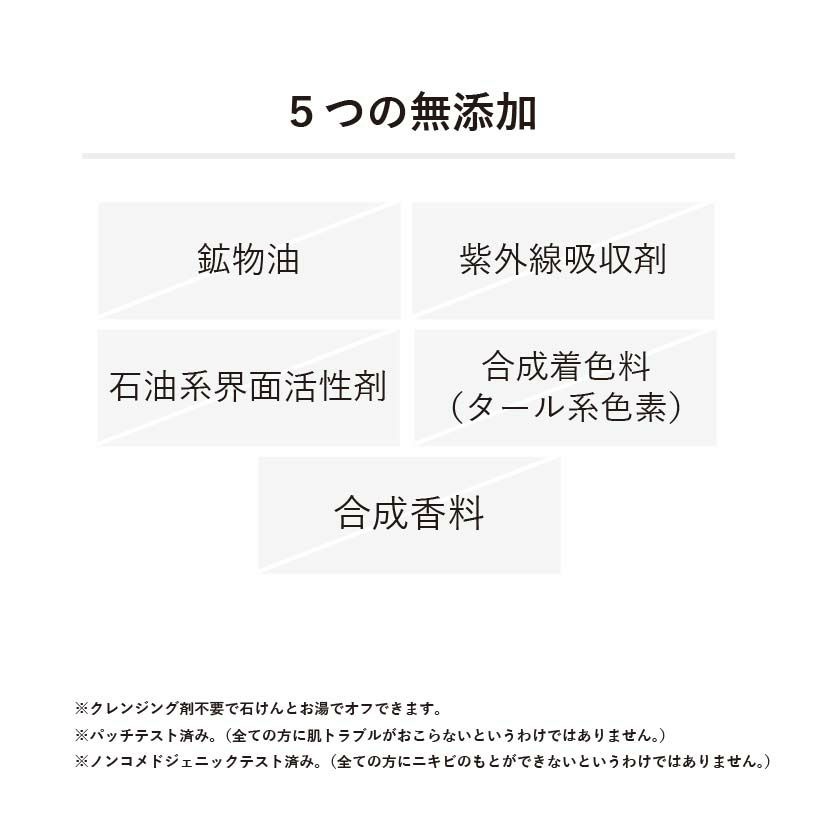 - <シャイニーグロウ> 水、酸化亜鉛、スクワラン、トリ(カプリル酸/カプリン酸)グリセリル、酸化チタン、BG、安息香酸アルキル(C12-15)、イソステアリン酸PEG-20グリセリル、プロパンジオール、トリエトキシカプリリルシラン、ペンチレングリコール、イソステアリン酸、水酸化Al、エクトイン、グリコーゲン、プルーン分解物、マンダリンオレンジ果皮エキス、ソメイヨシノ葉エキス、ビオサッカリドガム-4、オウゴン根エキス、ビルベリー葉エキス、グリセリン、シリカ、ジステアルジモニウムヘクトライト、キサンタンガム、ポリアクリレートクロスポリマー-6、ポリメチルシルセスキオキサン、ジメチコン、PEG-11メチルエーテルジメチコン、ポリヒドロキシステアリン酸、イソステアリン酸ポリグリセリル-10、セスキイソステアリン酸ソルビタン、トリイソステアリン酸ポリグリセリル-2、ポリソルベート80、フェノキシエタノール、トコフェロール、ラバンデュラハイブリダ油、マンダリンオレンジ果皮油、ベルガモット果実油、ティーツリー葉油、ローズマリー葉油、オレンジ油、オオベニミカン果皮油、マイカ、酸化鉄 <ピーチグロウ> 水、酸化亜鉛、スクワラン、トリ(カプリル酸/カプリン酸)グリセリル、酸化チタン、BG、安息香酸アルキル(C12-15)、イソステアリン酸PEG-20グリセリル、プロパンジオール、トリエトキシカプリリルシラン、ペンチレングリコール、イソステアリン酸、水酸化Al、エクトイン、グリコーゲン、プルーン分解物、マンダリンオレンジ果皮エキス、ソメイヨシノ葉エキス、ビオサッカリドガム-4、オウゴン根エキス、ビルベリー葉エキス、グリセリン、シリカ、ジステアルジモニウムヘクトライト、キサンタンガム、ポリアクリレートクロスポリマー-6、ポリメチルシルセスキオキサン、ジメチコン、PEG-11メチルエーテルジメチコン、ポリヒドロキシステアリン酸、イソステアリン酸ポリグリセリル-10、セスキイソステアリン酸ソルビタン、トリイソステアリン酸ポリグリセリル-2、ポリソルベート80、フェノキシエタノール、トコフェロール、ラバンデュラハイブリダ油、マンダリンオレンジ果皮油、ベルガモット果実油、ティーツリー葉油、ローズマリー葉油、オレンジ油、オオベニミカン果皮油、マイカ、酸化鉄、グンジョウ