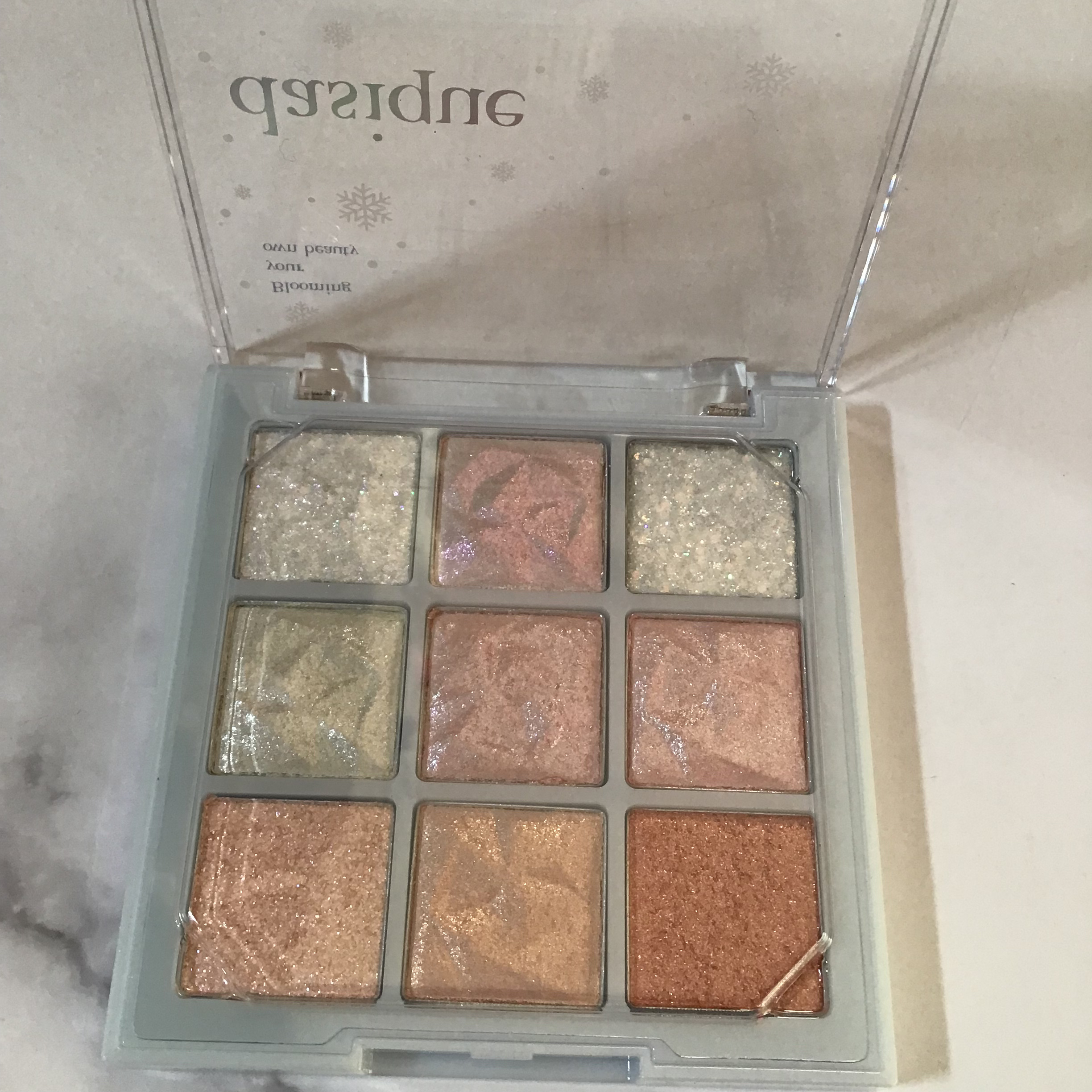 excelアイプランナーパレットブルームロード新作限定アイシャドウパレットタイルのようなケースの柄も可愛い♡リアルクローズシャドウのチュールスカートに配色が似ているかなと思いました。とにかく右上のブルーのラメが尊いです。ブルベ大勝利のパレット...