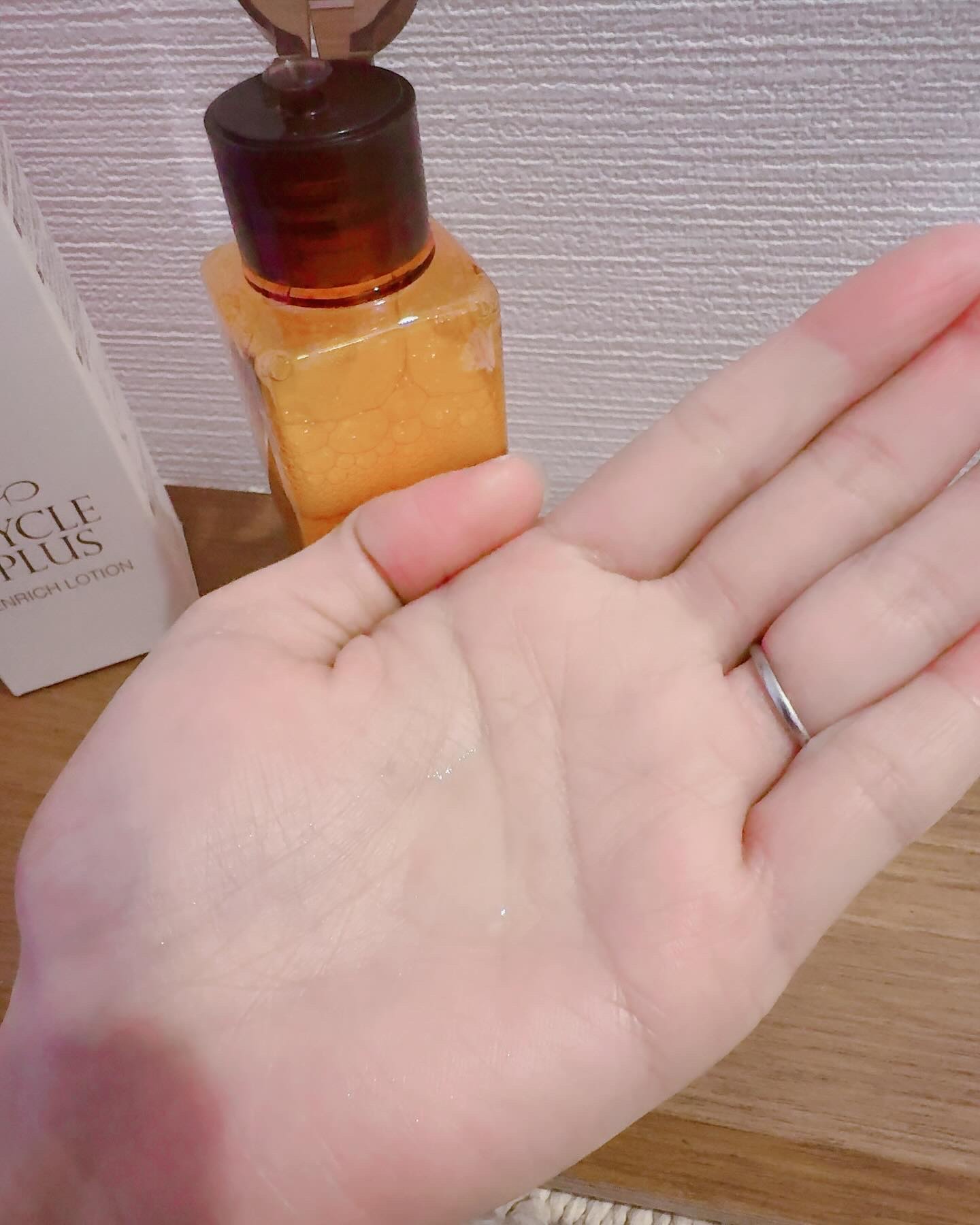 こちらはコテやヘアアイロンの熱ダメージから髪を守るヘアオイルになります。 うねりケア成分が、空洞化しクセがでやすい髪にタンパク質を補充することで、扱いやすいしなやかな髪へ導いてくれるのだとか。 ポンプ式の可愛いピンクのカラーのパケになっています。 テクスチャーはさらさらと水に近い感じですが、髪につけてみるとオイルのような仕上がりに。 香りはピュアリリーの女性らしい香りで使い心地よかったです。