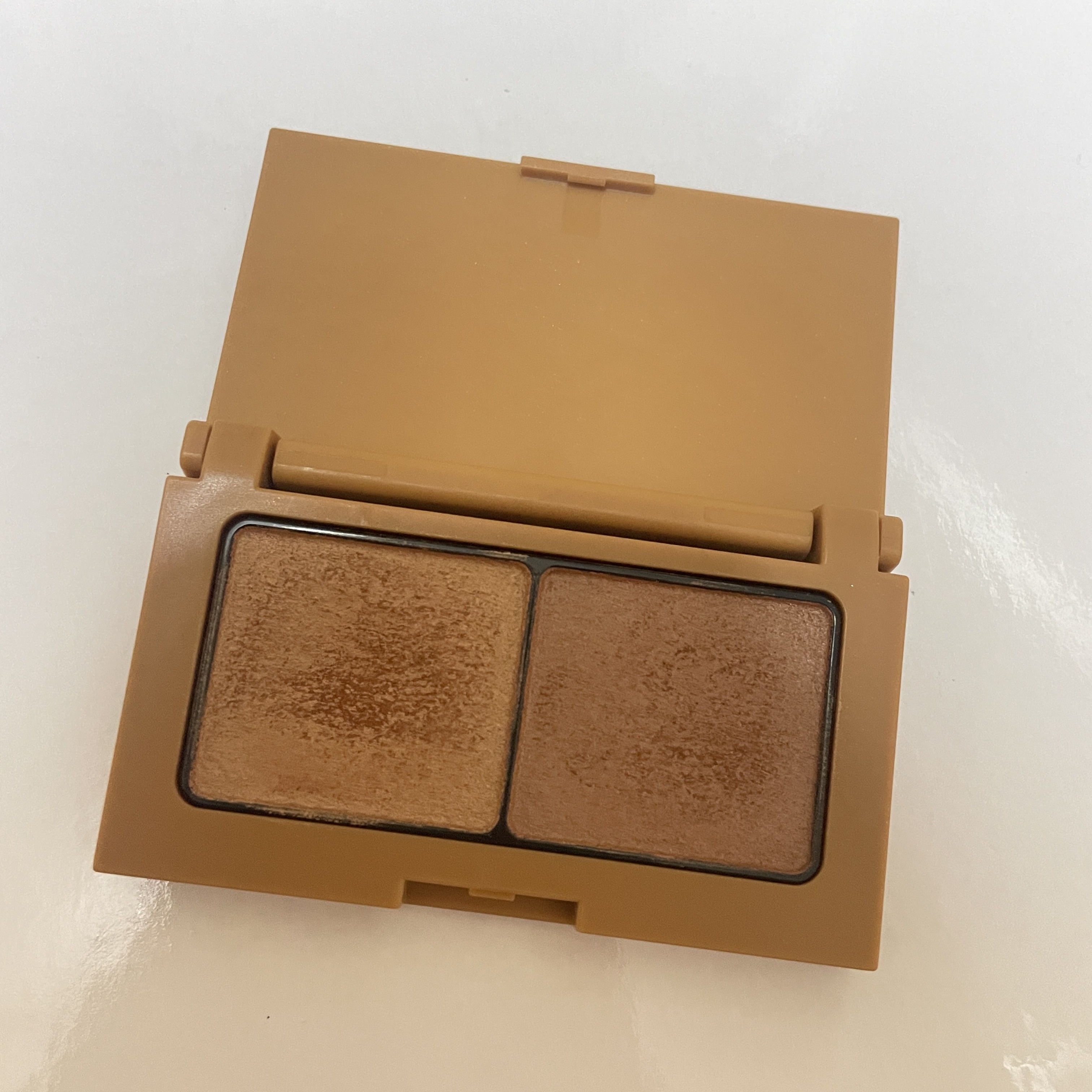一口にベージュと言っても黄みが強すぎたり、くすみが強すぎて重たい印象になったりしますが、こちらのお色はくすまないマットなベージュで、ラメカラーにはほんのりピンクが入っていて、イエベさんにもブルベさんにも馴染みやすいニュートラルなベージュだと思います。 2色でちゃんとメイクが仕上がるので失敗もしにくいし時短メイクにも◎ アイシャドウでいつも捨て色が出てしまう方や、今っぽいべージュメイクを簡単にしたい方にもオススメのお色だと思います。
