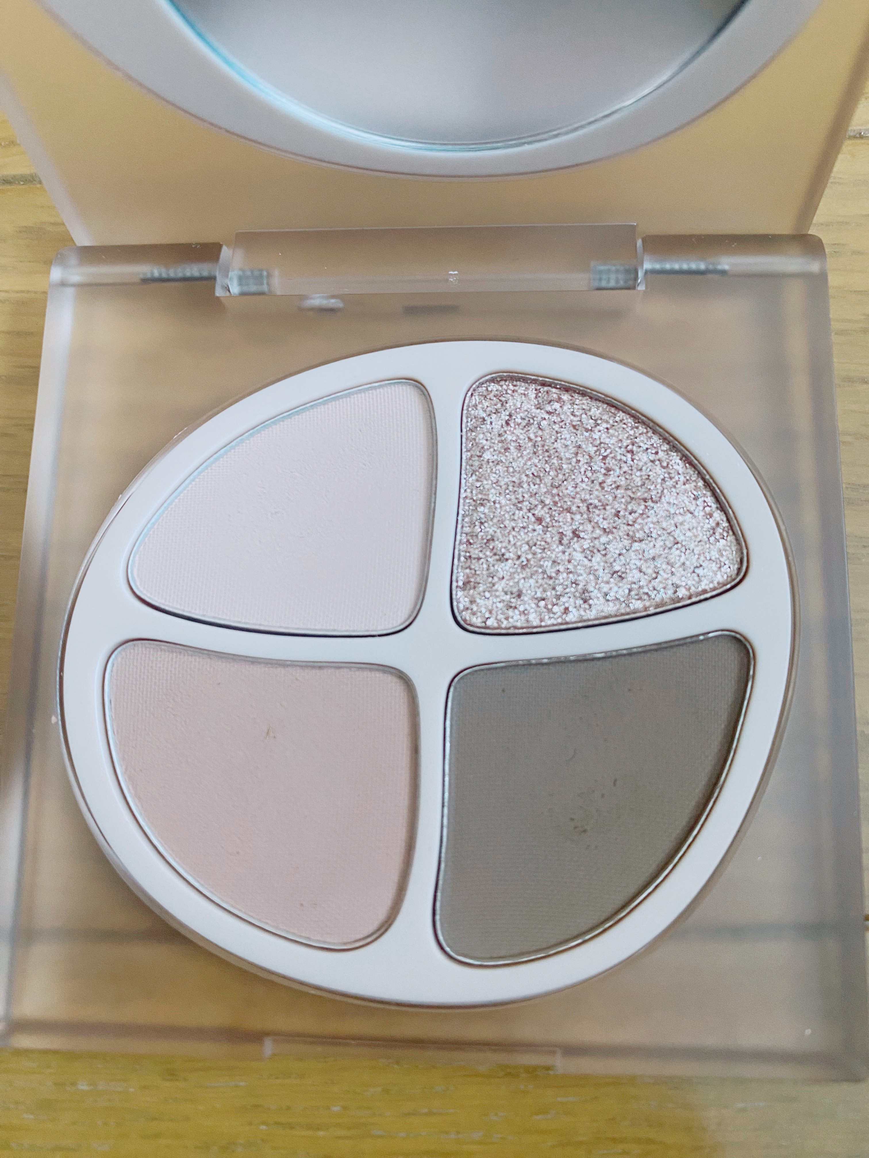 メロウミルクティーという名前に惹かれて買いました。 最近ベージュ系の色にハマっているのでドンピシャでした。 写真ではあまり色味がわからないかもしれませんが、肌馴染みの良い使いやすい色です。 デイリー使いにぴったりだと思います。 真ん中のラメがキラキラで上まぶたの真ん中や、下まぶたにちょんと乗せると可愛いです!