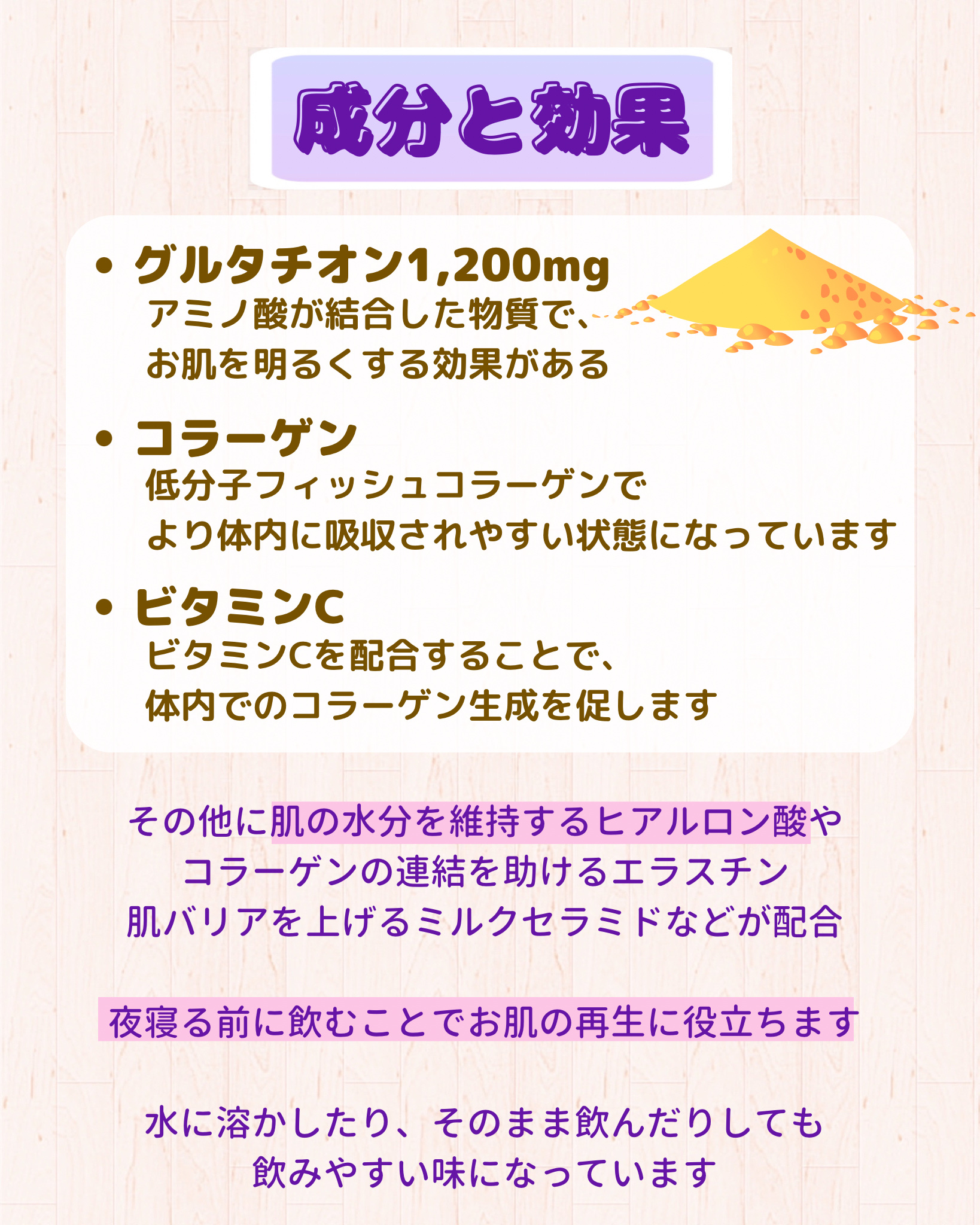 抗酸化、くすみ改善、シミ予防、トーンアップなど様々な嬉しい効果のあるグルタチオンの飴🍬 なんと砂糖、糖類0%で甘酸っぱいレモン味!(美味しい☺️) 純度90%以上の高純度、一粒純粋グルタチオン100mg配合!