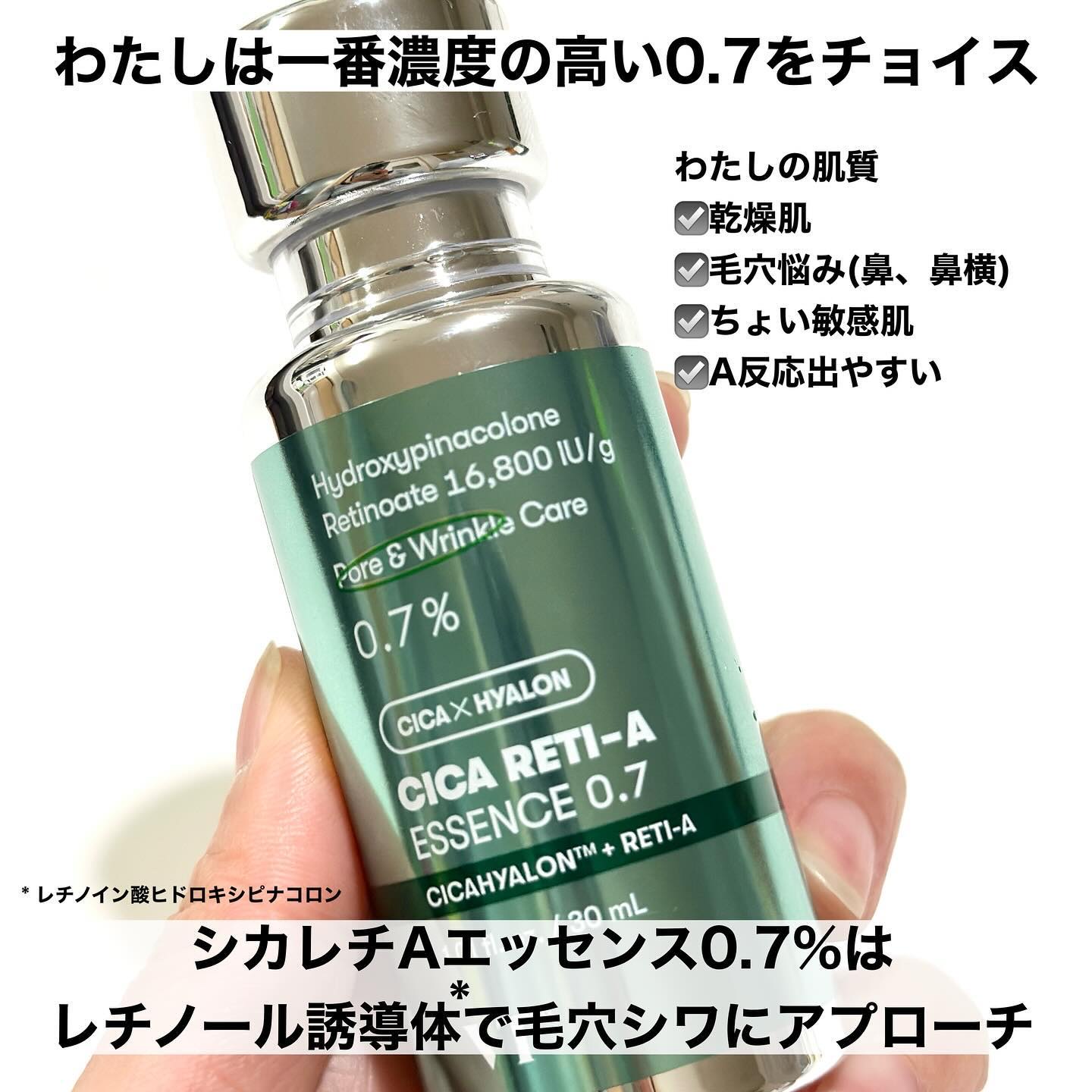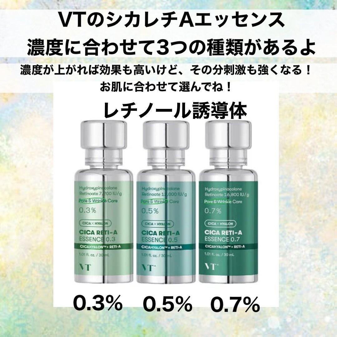 \目指せむきたまご肌💚/▼VTコスメティック▼シカレチAエッセンス0.130ml¥2,970(参考価格)0.1%レチノールだから初心者さんにもおすすめ!気になる人は少量から使ってみてね💚たるみ毛穴気になる人はレチノールがおすすめだよ!CICA...