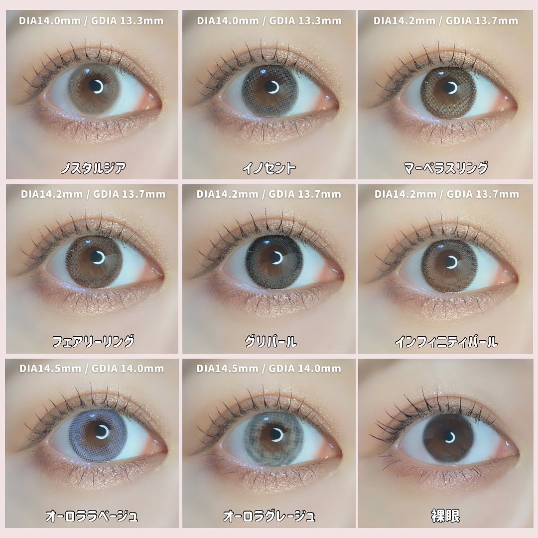 ナチュラルからギャル盛れまで幅広いデザインが豊富な全16色展開🌈 今回はその中の8色(DIA:14.2mm)を詳しくレビューしていきます☝🏻⸒⸒ 万人ウケする王道ブラウンカラコン🤎 清楚系好きな方におすすめ🕊️ 発色のいいミントカラーとグレーの組み合わせが綺麗✨️ 透明感UPさせてくれるカラコンです🫧