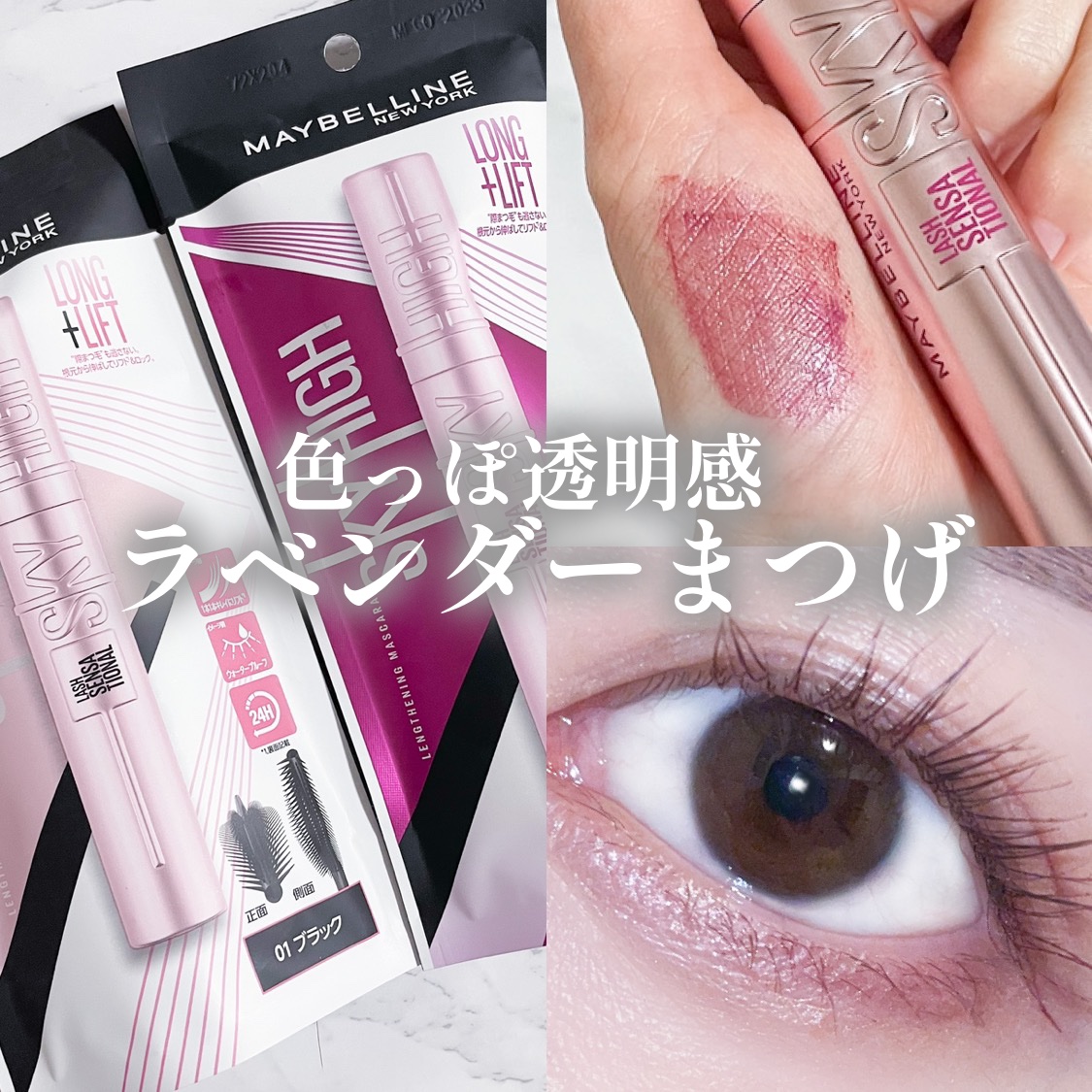 色っぽ可愛い目元になれるマスカラをレポします♡ 大バズりマスカラのラベンダーカラー。可愛すぎないパキッとしたラベンダーカラーなので、眼力も出つつ透明感も演出できて好きさ🤞🏻💟